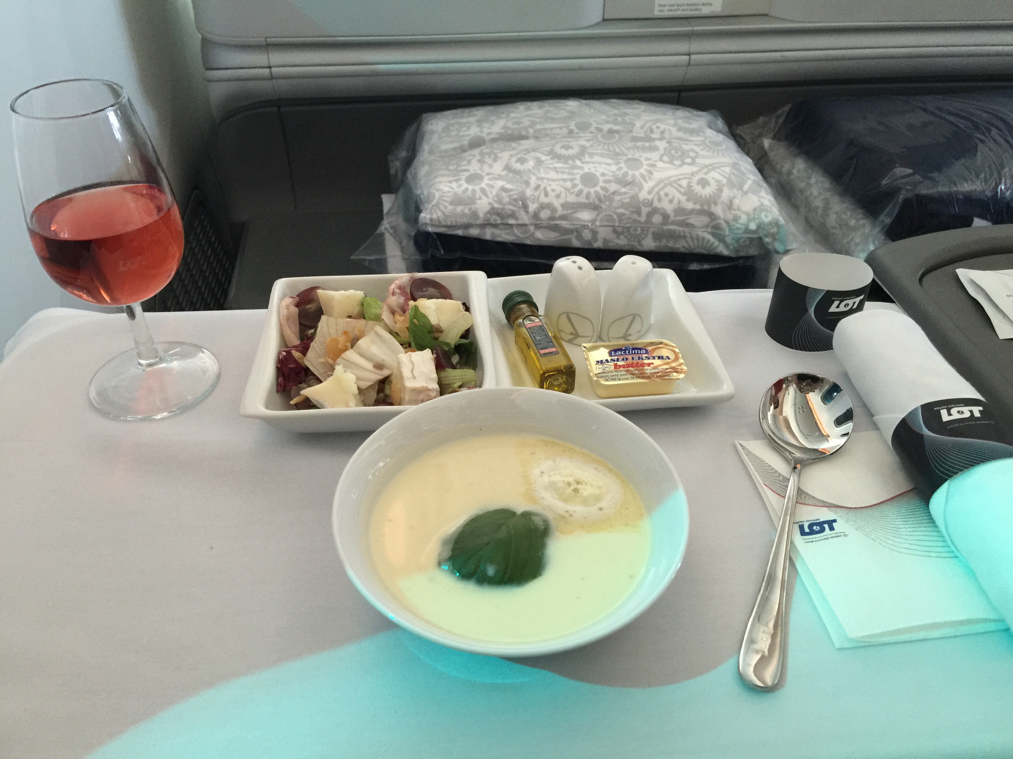 Oceniając sam ‘hard-product’ – to LOT jako jeden z niewielu przewoźników oferuje bardzo szerokie, a co za tym idzie wygodne w opcji rozłożonej fotele, dodatkowy podnóżek, który wprawdzie dla osób niskich nie spełnia dużej roli ale stanowi kolejny schowek dla rzeczy podręcznych. Rozkładane stoliki są wygodnie wysoko zawieszone i mają możliwość regulacji do przodu i tyłu, co daje duży komfort dostosowania stolika przy posiłkach.
