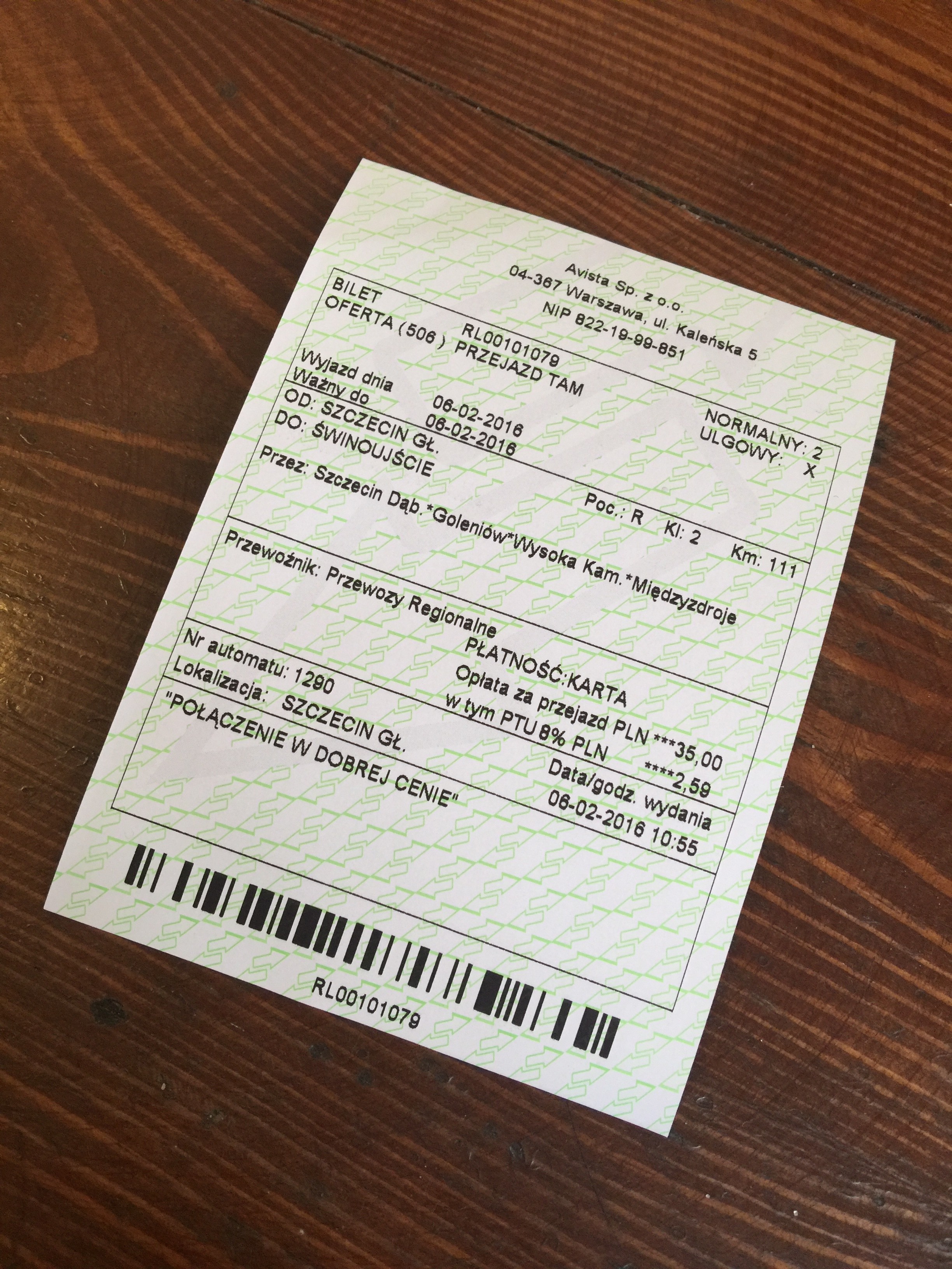 Zakładając, że podróżowalibyśmy pociągiem to czas dojazdu do Świnoujścia byłby taki sam, konieczna byłaby przesiadka w Poznaniu (do pociągu, którym finalnie dojechaliśmy na miejsce) ale nie zaliczylibyśmy mil/segmentów w programach Miles&More/Miles&Smiles oraz nie moglibyśmy spędzić paru chwil w Szczecinie.