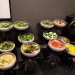 - bufet zimny: wędliny, sery, wędzony łosoś, muesli, ziarna, papryka nadziewana kapustą kiszoną, kapusta kiszona, sałaty, oliwki, owoce, warzywa, dżemy, nutella,