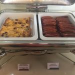 Lounge oferuje dania zimne (kanapki, sałatki, zimne przekąski, jogurty itp) oraz typowy dla lounge’y zestaw słodkich i słonych przekąsek. W godzinach południowych podawane są dania gorące.