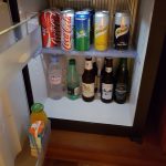 Idąc dalej, po prawej stronie znajdziemy szafkę z minibarem, oraz przyborami do robienia kawy czy herbaty, a także kieliszki, pojemnik na lód, oraz darmowa woda, sygnowana marką Conrad. Następnie znajdziemy spory telewizor, a także świetnie wyposażone biurko z kompletem przyborów do pisania, papeterią, lokalnymi pocztówkami oraz innymi, podstawowymi przyborami biurowymi.