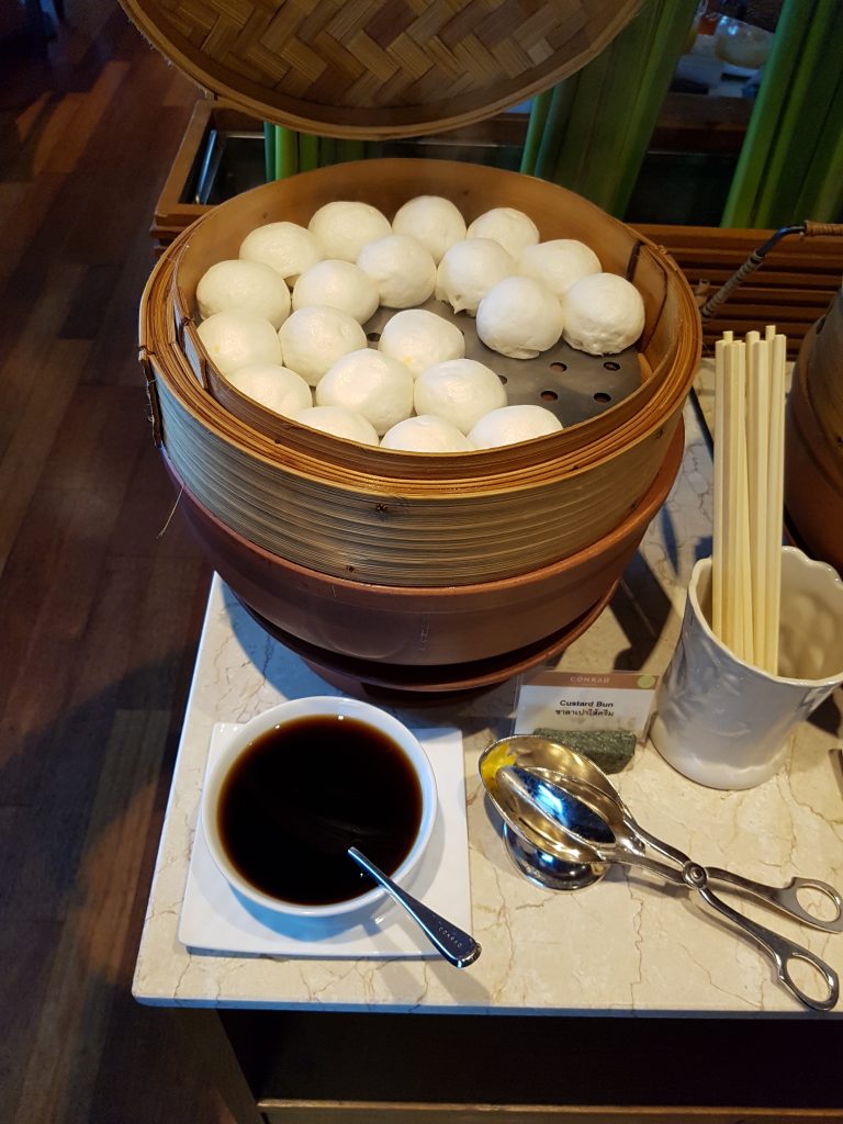 W hotelu Conrad Bangkok na 29 piętrze znajduje się executive lounge. Jest on podzielony na dwie strefy – główną, oraz dodatkową, vis-a-vis części głównej. Takie skonstruowanie saloniku, ma związek z jego ofertą. Ale od początku – lounge jest czynny codziennie w godzinach 6:00-23:00, obowiązuje w nim dress code smart casual (czyli bez klapek, kapci, strojów sportowych, dodatkowo od panów wymaga się obuwia zakrywającego palce u stóp, a także obowiązuje zakaz ubierania koszulek bez rękawów).