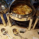 Śniadanie jest również serwowane w saloniku, jeśli mamy do niego dostęp. Jest to dobre miejsce na rozpoczęcie dnia – serwowane tu śniadanie to nieco okrojona wersja tego, co znajdziemy w restauracji. Znajdziemy tu jednak większość dań ciepłych i zimnych, a nawet hot station z kucharzem, który na miejscu przygotuje jajka według preferencji gości. Dodatkowym plusem śniadania w lounge jest nieco bardziej kameralna atmosfera i większy spokój. Należy jednak wziąc pod uwagę, że najprzyjemniejsze stoliki – te w pobliżu okien z piękną panoramą miasta o wschodzie słońca – szybko zostają zajęte.