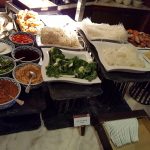 Podobnie dzieje się również w czasie podawania wieczornych koktajli i przekąsek. Serwowane w tym czasie dania to głównie wybór kilku dań ciepłych (na przykład wołowina, ryby, satay drobiowy, warzywa na ciepło), a także sałatki, zupa z nudlami na zimno, kilka innych dań, których oferta ulega zmianie, oraz wybór ciast i innych słodyczy.