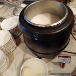 typowy, śniadaniowy zestaw hotelowy – jajka na każdy sposób, kiełbaski na ciepło, fasolka śniadaniowa w sosie pomidorowym itp,