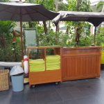 Korzystając ze świetnej pogody, odwiedziliśmy również hotelowy basen. Jest on położony na siódmym piętrze i stanowi świetne miejsce na relaks. Do dyspozycji mamy mały brodzik, oraz duży basen, dookoła którego ustawione są leżaki z parasolami i stolikami, a także wielkie kosze z bardzo wygodnymi materacami. Do dyspozycji gości pozostaje przybasenowy bar serwujący napoje i przekąski. Dla wygody gości na stolikach wokół basenu umieszczono menu baru, a także przycisk przywołujący kelnera.