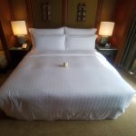Po lewej stronie pokoju, od wejścia, znajduje się mała kanapa z fotelem oraz stolikiem kawowym, na którym za chwilę pojawia się wstawka z owoców. Dalej clou programu, czyli wielkie, wygodne łóżko typu king z szafkami nocnymi po obu stronach. Na łóżku znajdujemy mały upominek – małego słonia – maskotkę. Podobną niespodziankę znajdujemy również w łazience, na stoliku do wanny, z tą jednak różnicą, że słonik z wanny wykonany jest z tworzywa przypominającego gumę. Takie drobne upominki na pewno będą stanowić miłe wspomnienie pobytu w hotelu Conrad Bangkok.