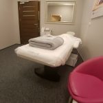 There is no price list since all the massages are free of charge. They don’t take appointments per se, but rather serve customers on first come first served basis. Since the person doing the massages has her desk roughly in the middle of the lounge you can easily spot her as soon as you enter the lounge, if she’s available. The spot is pretty impossible to miss. If she is doing the treatment just wait a bit. One massage takes typically 20-30 minutes.
