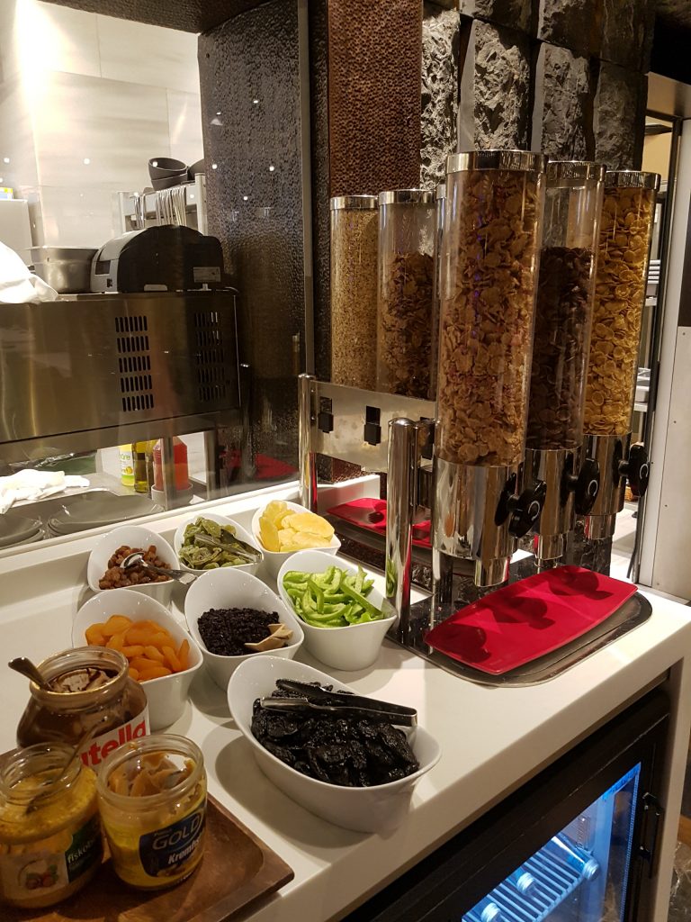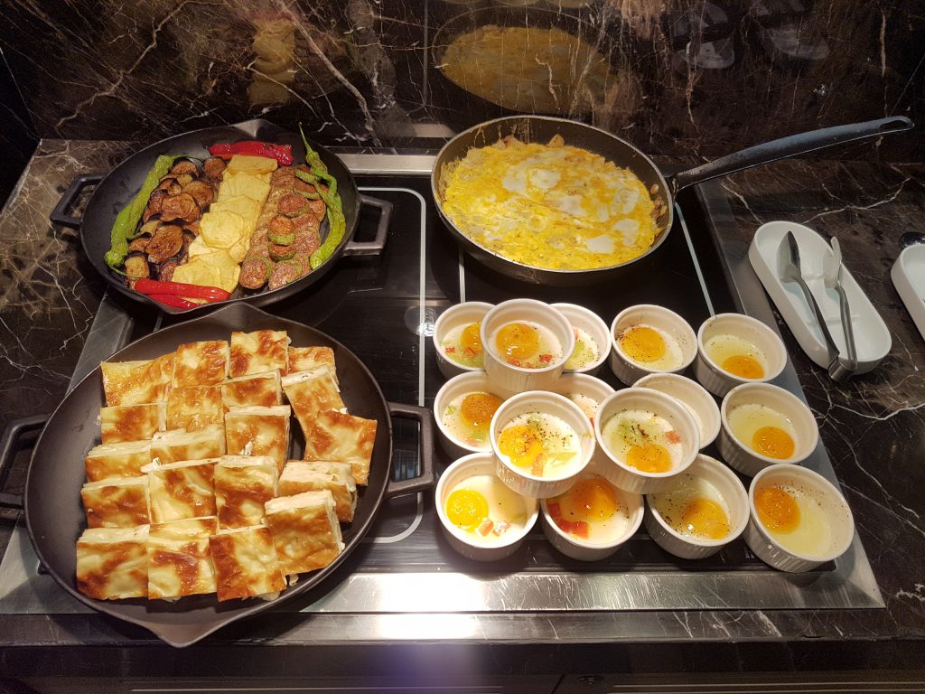 Śniadanie serwowane jest w restauracji Hamdi na 7 piętrze hotelu. Z restauracji przez okna ciągnące się przez całą ścianę rozciąga się wspaniały widok na panoramę miasta i malowniczo wyglądający, szczególnie o zmierzchu Złoty Róg. Sala restauracji nie jest ogromna, ale nie jest też mała – w sam raz dostosowana do wielkości hotelu. Dodatkową przestrzeń a także miejsce dla palących znajdzie się na przylegającym do restauracji tarasie, gdzie w promieniach porannego słońca można zjeść śniadanie na świeżym powietrzu. Bufetowa, typowa dla hoteli sieciowych forma śniadania sprzyja spróbowaniu dań, na które akurat mamy ochotę z szerokiej gamy potraw oferowanych przez hotel. Oprócz tradycyjnych elementów śniadaniowych jak pieczywo, wędliny czy jajecznica, mamy kilka elementów lokalnych, wyróżniających Radisson Blu Pera wśród innych hoteli tej marki. Mamy zatem turecką jajecznicę (z pomidorem), grillowane kiełbaski wołowe cięte na małe kawałki, wybór warzyw z grilla (papryka, bakłażan, cukinia), warzywa na ciepło (brokuły, pomidory pieczone, pieczarki z papryką), jest też rodzaj fritaty z pieczonymi ziemniakami zalanymi masą z jajek i tak zapieczonymi. Duży wybór świeżych warzyw uzupełniają także lokalne przysmaki jak wybór oliwek czy kilka rodzajów słynnej, tureckiej chałwy. Całości oferty śniadaniowej dopełniają napoje, z których wyróżnia się na pewno świeżo wyciskany sok z lokalnych pomarańczy – pycha!