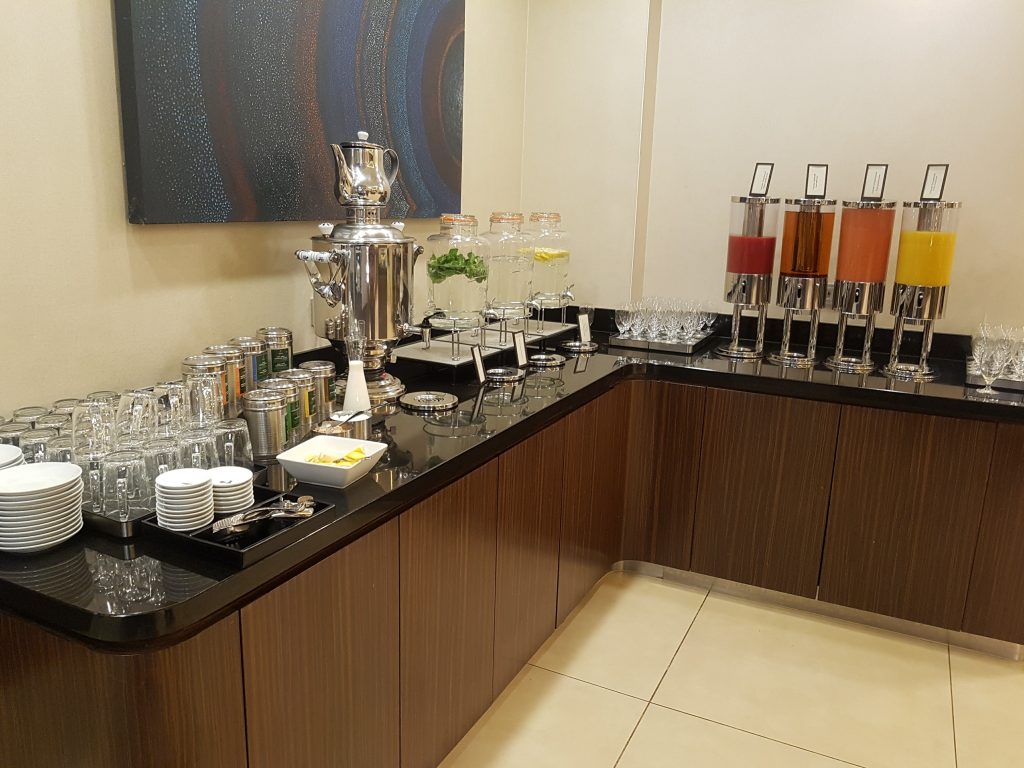 Salonik w hotelu Hilton jest czynny w godzinach 6-23 i jest dostępny dla gości, którzy zarezerwowali pokój z opcją dostępu do lounge lub posiadają status Diamond w programie HHonors.