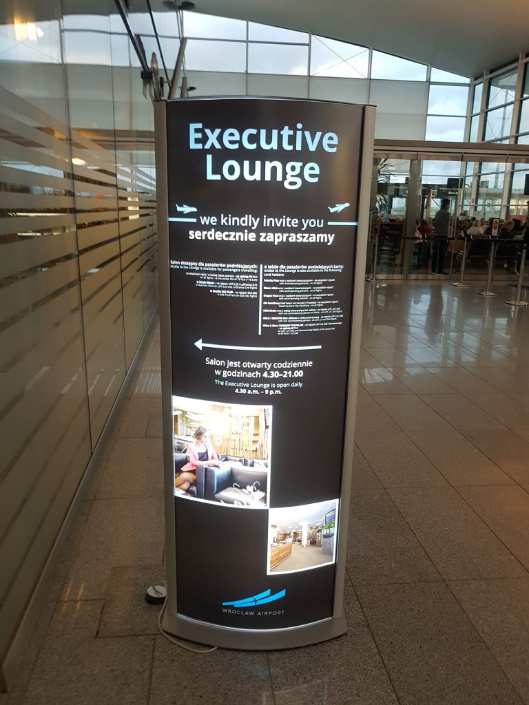 Executive Lounge na lotnisku we Wrocławiu znajduje się za kontrolą bezpieczeństwa na pierwszym piętrze w hali odlotów w okolicach bramek 9-11 i jest otwarty codziennie w godzinach 4.30-21.00.