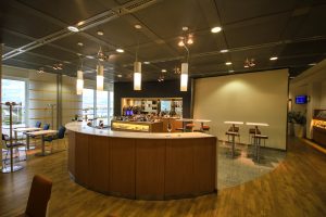 Po przejściu przez drzwi z mlecznego szkła od razu wita nas recepcjonistka i skanuje karty pokładowe. Dostęp przewidziany jest dla każdego posiadacza karty Star Alliance GOLD, srebrnej karty Miles&More lub podróżujących w klasie biznes liniami z sojuszu Star Alliance. Obsługa przy wejściu zawiadamia, że nie są ogłaszane informacje o boardingu oraz – co bardzo miłe – zapraszając zwraca się po nazwisku, wskazując strefę restauracyjną i relaksacyjną.