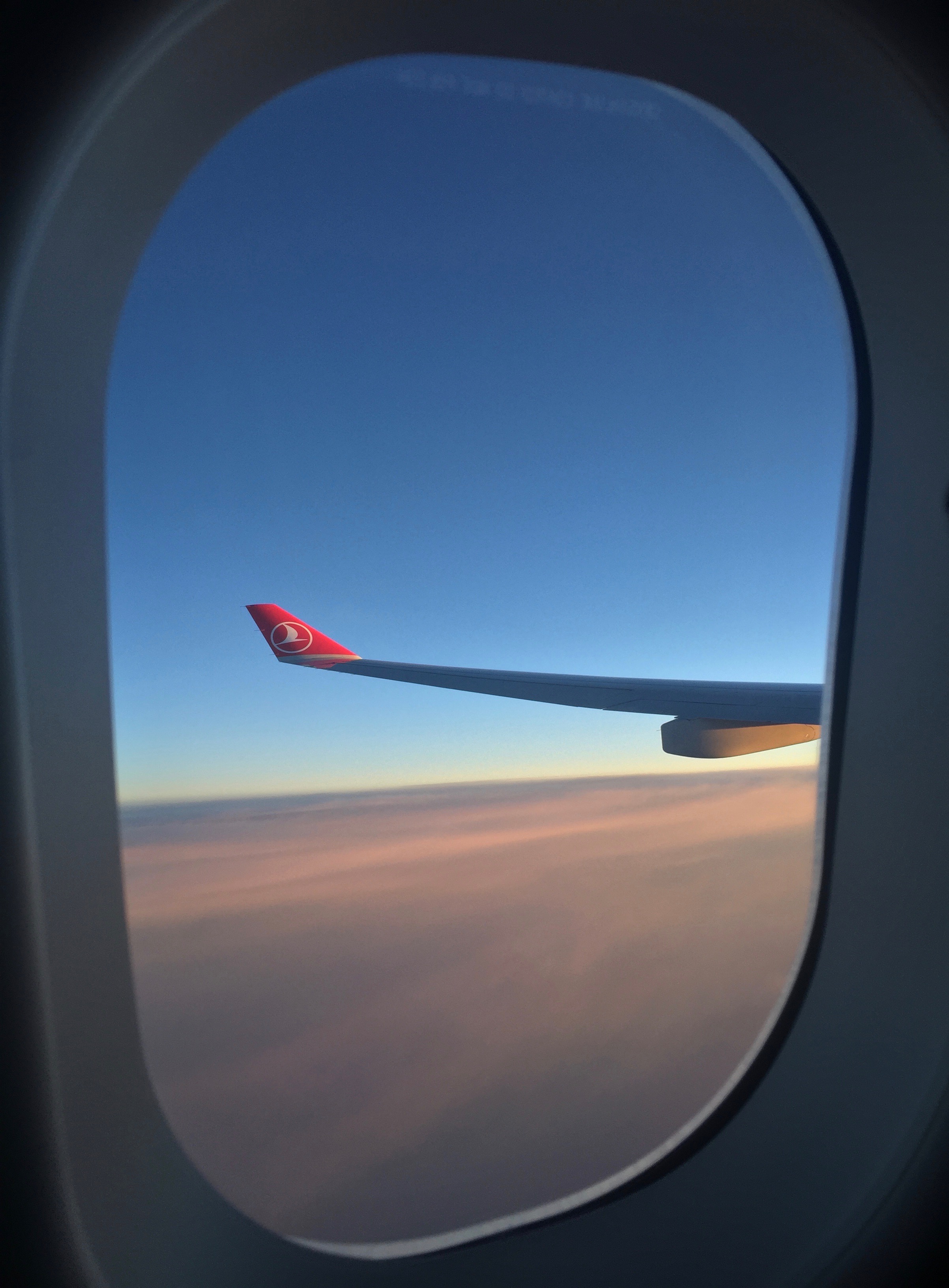 Ze Stambułu na jedno z tokijskich lotnisk – Tokio Narita – startujemy po północy, a lot wykonywany jest Airbusem 330-300. Kto choć raz leciał przez lotnisko Ataturk w Stambule ten wie, że panuje nam chaos. Tak było i tym razem. Nawet nie wiedzieliśmy kiedy zaczął się boarding, nie wspominając o wcześniejszej zmianie gate’u. Nasz samolot stał na stanowisku oddalonym od terminala więc podstawiono 4 autobusy, które dowiozły do niego pasażerów.