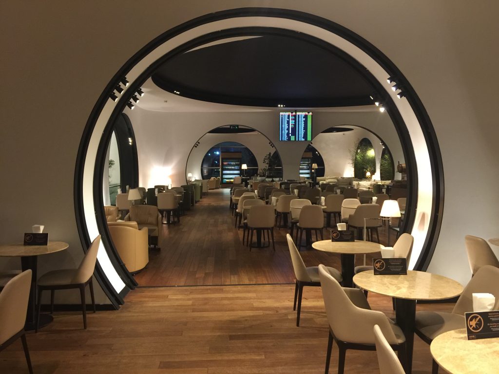 Od razu przy wejściu do saloniku należy się przygotować na pierwsze niespodzianki. W zamyśle, całość procesu wejścia do niego miała być bezobsługowa – automatyczne bramki skanujące karty pokładowe wpuszczają pasażerów na podstawie danych tam zawartych. Często jednak zdarza się, że bramki te nie działają jak należy. Przy małym ruchu – wystarczy podejść do biurka pracowników linii stojącego zaraz obok. W godzinach szczytu jednak pracownicy często otwierają bramki i ręcznie weryfikują/notują dane wchodzących do lounge pasażerów.