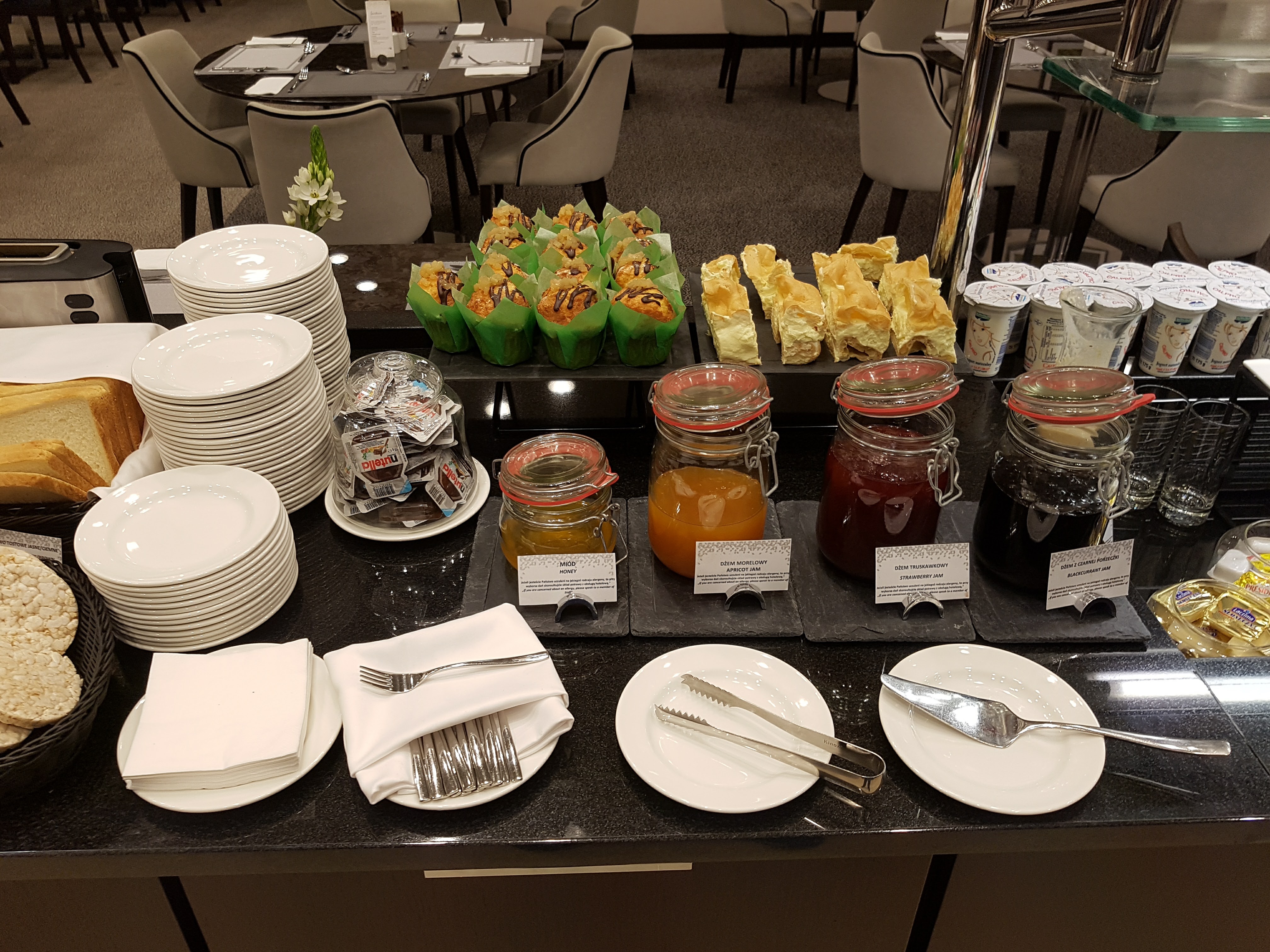 Restauracja jak i sam bufet są całkiem spore. Jedzenie smaczne, pachnące i świeże, na bieżąco uzupełniane. W stałej ofercie są między innymi jajecznica, bekon, kiełbaski, fasolka po bretońsku, warzywa pieczone, wybór wędlin i serów, wędzone ryby, gofry do samodzielnego przygotowania, szeroki wybór muesli, ciepłe croissanty wypiekane na miejscu, karpatka, kawa z ekspresu i herbata Althaus. Świeże warzywa, owoce i soki domykają ofertę. Jeśli komuś nadal mało, to zawsze może poprosić kucharza o przygotowanie dań z jajek w ulubionej postaci, francuskich tostów lub naleśników.
