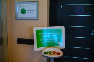 Sama procedura przejścia przez kontrolę bezpieczeństwa do Saloniku jest także nietypowa: Pracownik ochrony po zweryfikowaniu uprawnień do skorzystania z usługi, wzywa pracownika Lounge i przekazuje karty pokładowe i kartę uprawniającą do wstępu w celu zarejestrowania w saloniku i dopiero wtedy mozna przystąpić do procedury przechodzenia kontroli bezpieczeństwa. Wejście do samego pomieszczenia Business Lounge znajduje się bezpośrednio naprzeciwko wyjścia z „pomieszczenia Fast Track”.