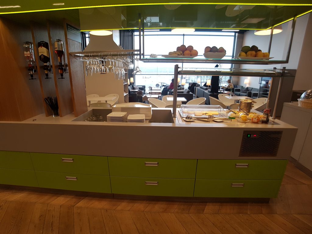 Oferta gastronomiczna lounge nie uległa znaczącej zmianie w stosunku do tego, co oferował w swoim poprzednim wydaniu. Jedyna ciepła opcja to zupa. Poprawie uległa, głównie z naturalnych powodów (więcej miejsca, dedykowana wyspa-bar), ekspozycja oferty.