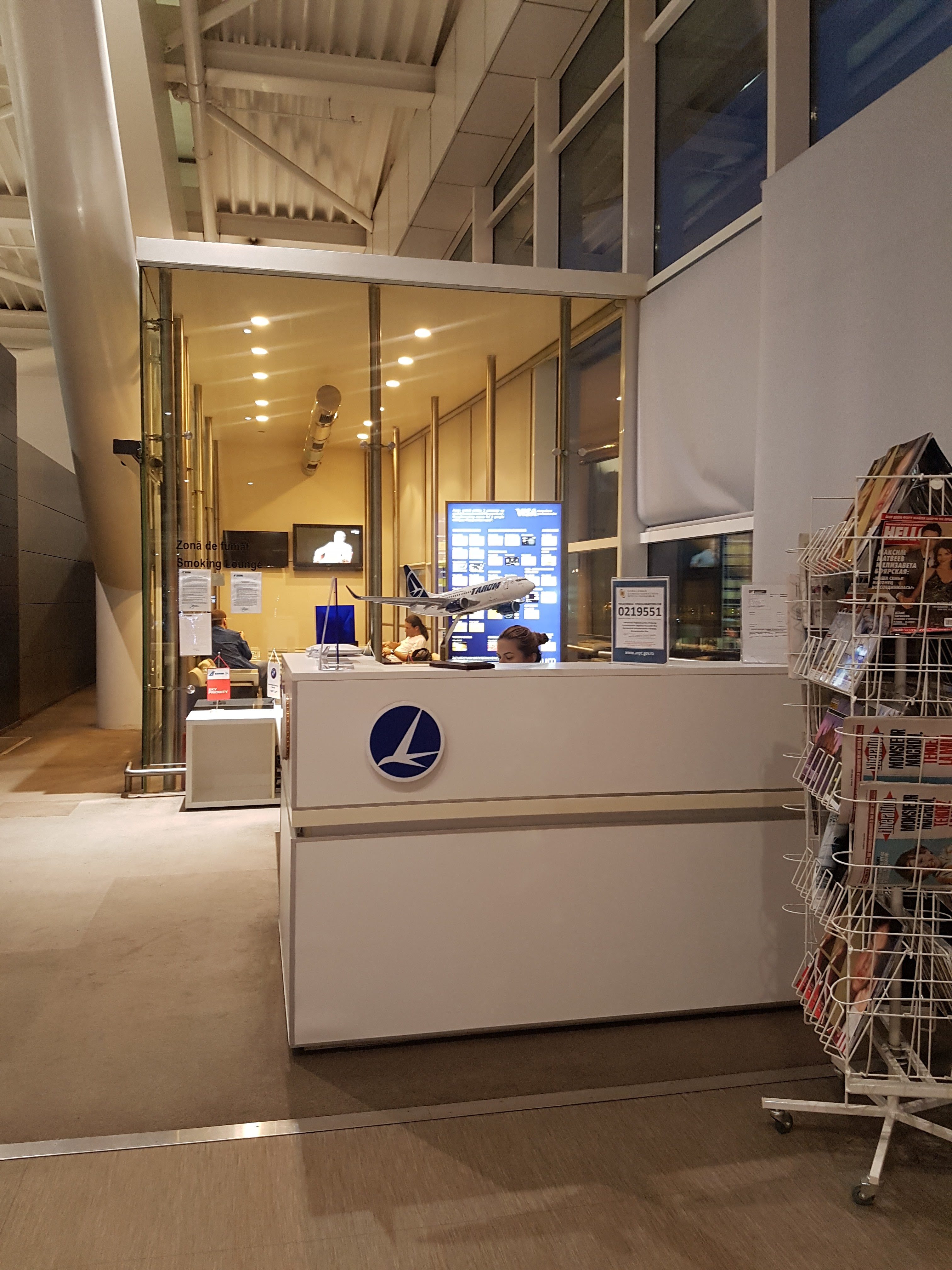 Salonik biznesowy rumuńskiego przewoźnika narodowego na lotnisku w Bukareszcie mieści się na piętrze, w pobliżu bramki 7. Lounge, co rzadkie na tak małych lotniskach, czynny jest przez całą dobę.