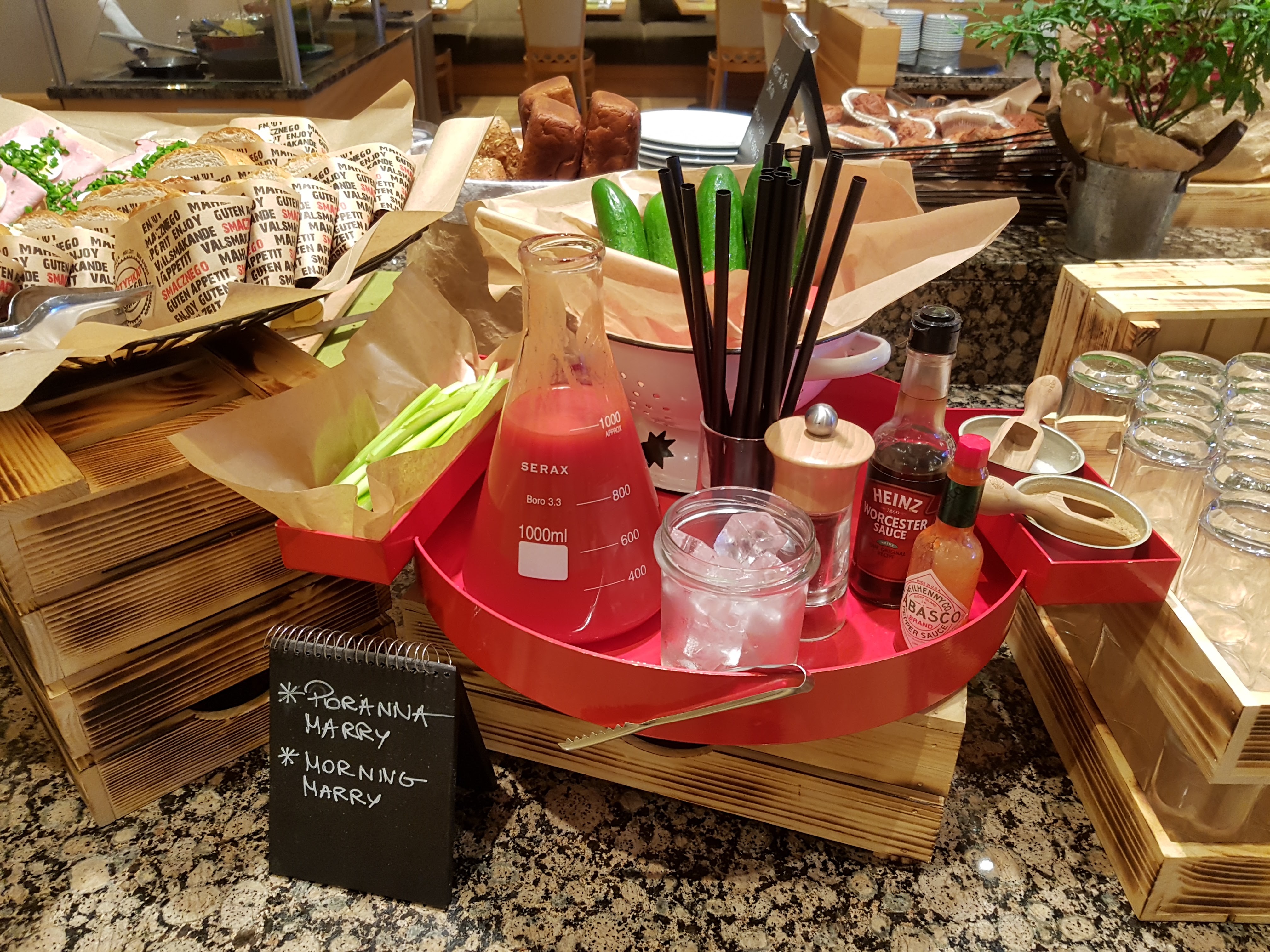 Oferta śniadaniowa Radisson’owskiego Super Breakfast podparta jak zwykle filarami złożonymi ze świeżo wyciskanego soku pomarańczowego, pieczonego/wędzonego łososia i soku pomidorowego z dodatkami do przyrządzenia Morning Mary jest bardzo bogata i różnorodna. Serwowane z trzech wysp – bufetów, podzielone jest według klucza – dania ciepłe (kiełbaski, jajka na twardo/miękko, jajka w kokilkach, amerykańskie pankejki, itp), dania zimne (jogurty, owoce, płatki, świeże warzywa, wędliny, sery, ryby, gotowe kanapki itp), oraz wypieki (chleby, bułki, croissanty, ciasto jogurtowe, ciasta francuskie, muffinki, itp).