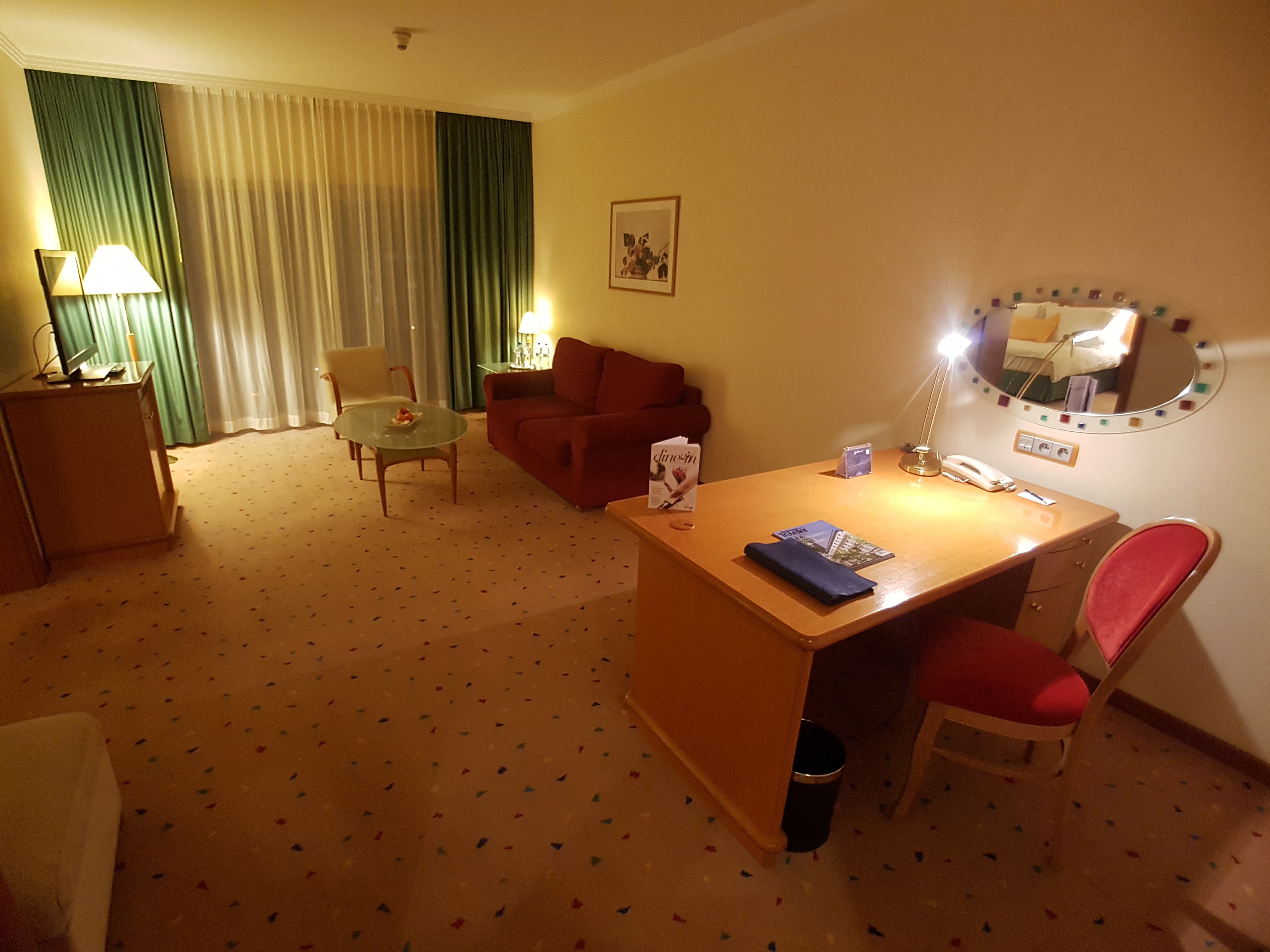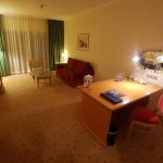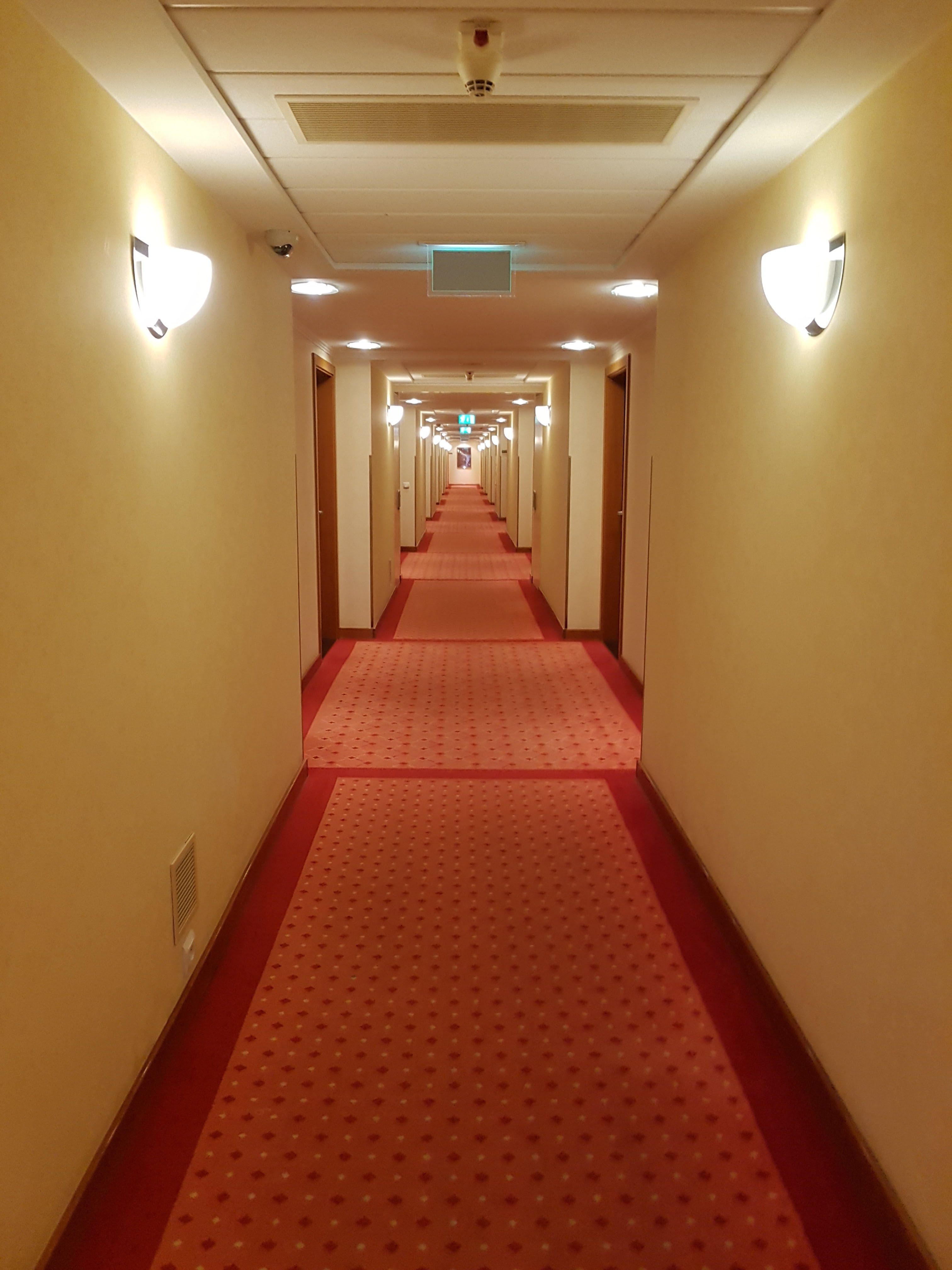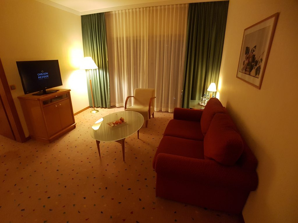 Nasz najnowszy pobyt w hotelu zaczyna się w piątkowe popołudnie. Nasza weekendowa rezerwacja w ramach promocji dwie noce w cenie jednej (2 za 1) obejmuje pokój standardowy. Za pobyt zapłacimy 280 zł i jako benefity członkowskie programu Club Carlson otrzymamy między innymi śniadanie oraz w miarę dostępności upgrade do pokoju wyższej kategorii. Na recepcji nie ma kolejki, które w tym hotelu się zdarzają, szczególnie podczas meldowania lub wymeldowywania grup autokarowych. Zostajemy obsłużeni z powściągliwym profesjonalizmem, a formalności trwają dosłownie moment. Po chwili z kartami-kluczami w rękach ruszamy na 8 piętro, do apartamentu numer 850.
