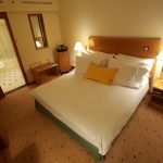 Pokój dzienny oddzielają od dalszej części apartamentu wielkie, dwuskrzydłowe drzwi. W sypialni króluje wielkie i wygodne łóżko typu king z szafkami nocnymi po obu stronach. Jest też telewizor, fotel, prasowalnica do spodni a także szafka do rozłożenia bagażu.