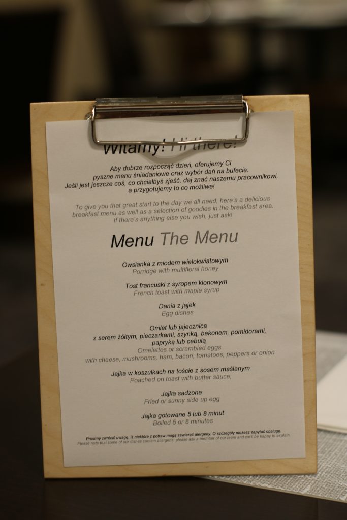 Na stołach dostępne są również menu z dodatkowymi atrakcjami, które można zamówić prosto z kuchni, przygotowanymi zgodnie z naszymi preferencjami. My tradycyjnie skusiliśmy się na jajka po benedyktyńsku, które były ugotowane w punkt, tak jak lubimy najbardziej – ze ściętym białkiem i płynnym żółtkiem. Chapeau bas dla szefa kuchni!
