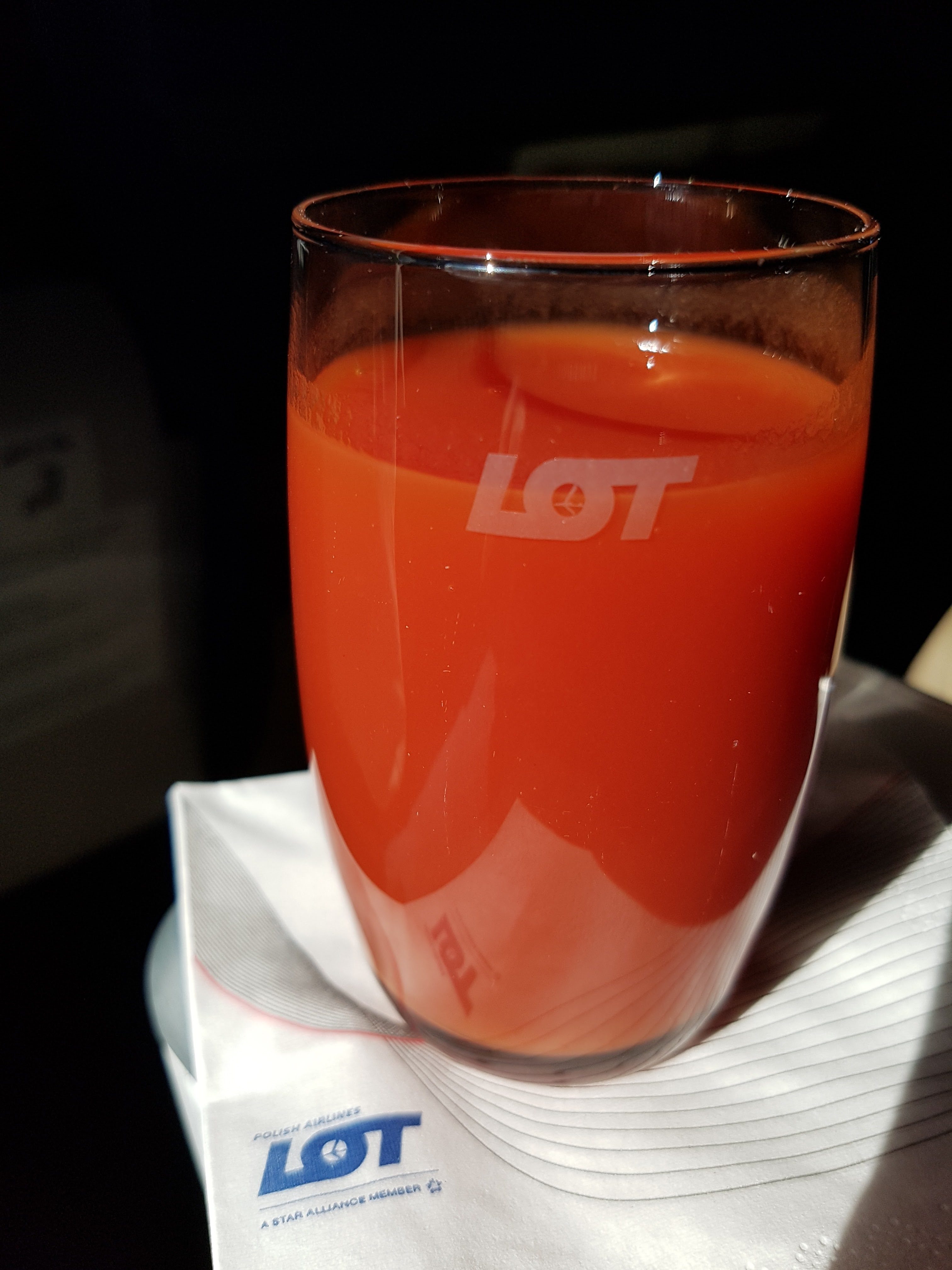 Znów, jak w poprzednim rejsie, czasu na serwis było bardzo mało, niemniej stewardessy poradziły sobie z nim wyśmienicie, co docenili pasażerowie nie przedłużając nadto konsumpcji i umożliwiając szybkie zebranie tacek po posiłku. Tu ciekawostka – nie jesteśmy pewni, czy to specyfika krótkiego lotu specjalnego, czy stała część serwisu w klasie premium w Dreamlinerach LOTu, serwis odbywał się w każdym przypadku z wózka, natomiast zbierane tace wracały prosto ze stolika pasażera do samolotowej kuchni, każda indywidualnie.