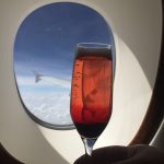 Po starcie i wyłączeniu sygnalizacji zapiąć pasy udajemy się do baru, gdzie załoga przygotowuje przekąski i drinki. Zamawiamy koktajl Kir Royal (creme de cassis z szampanem) i zasiadamy na kanapie przy oknie.