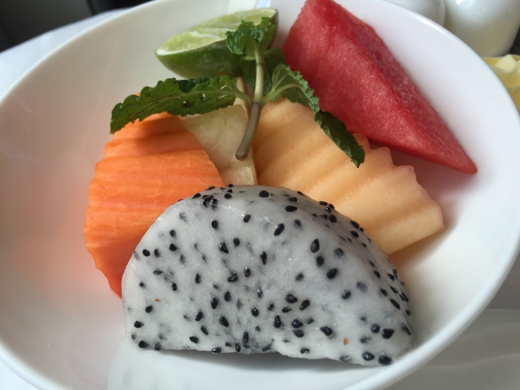 Klasa Biznes Emirates A380 – podniebny bar (Onboard Lounge) – owocowa przekąska