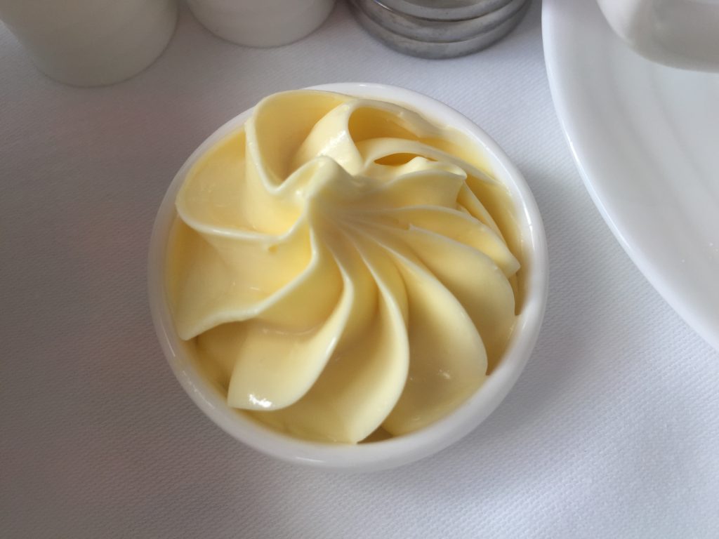 Gdy rozpoczyna się serwis w naszej kabinie wracamy na miejsca i oddajemy się konsumpcji. Na początek otrzymujemy standardowo gorący ręczniczek do odświeżenia. Następnie stewardessa otwiera stolik i układa na nim obrus. Po chwili rozkłada zastawę: solniczkę i pieprzniczkę, maselniczkę, kieliszek do wina i szklankę do wody oraz sztućce. Ryba jest przepyszna, pełna smaku i absolutnie nie jest wysuszona. Jedyne zastrzeżenie mamy do poziomu wysmażenia steka wołowego, który jest przesmażony, ale wszystkie pozostałe elementy posiłku są idealne. Plus za ciepłe i chrupiące pieczywo czosnkowe!