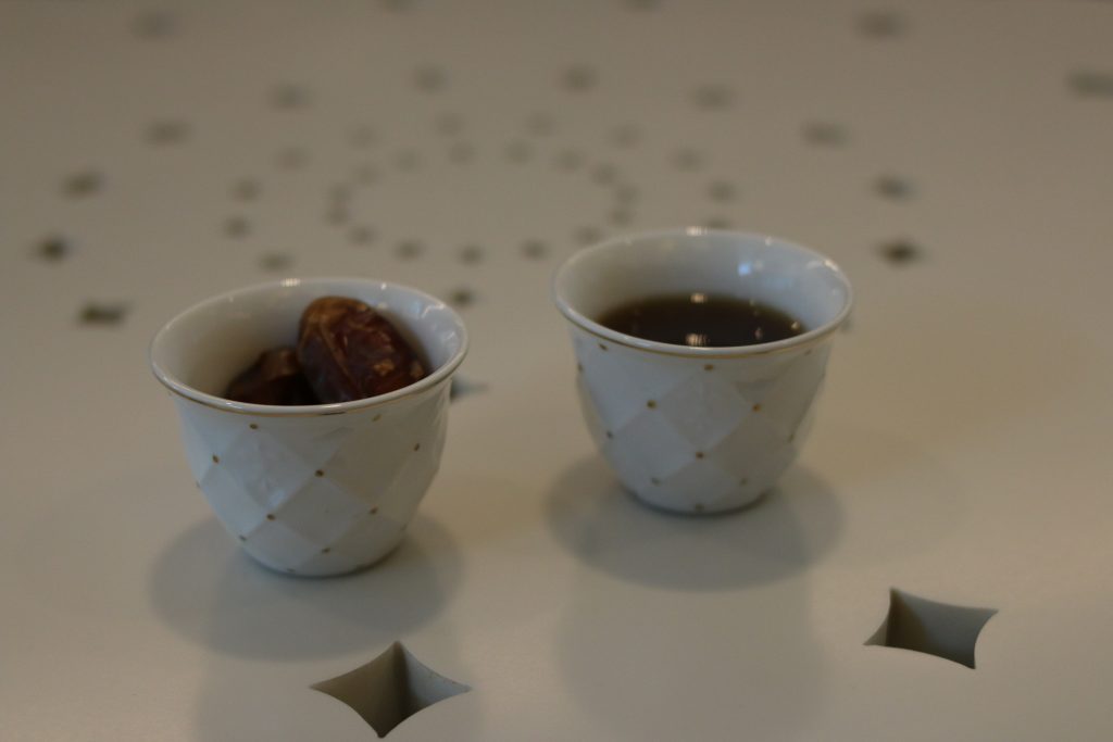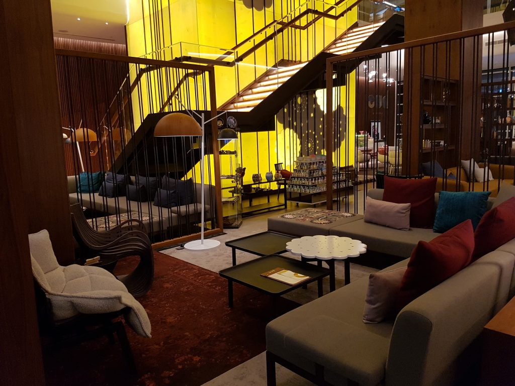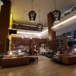 Na osobną wzmiankę zasługuje też hotelowe lobby, którego aranżacja stanowi doskonały balans pomiędzy otwartą przestrzenią a nieco bardziej intymnymi miejscami do siedzenia w których można bez skrępowania i przeszkadzania innym porozmawiać w spokoju. Atutem tego miejsca jest też dostępna na okrągło świeża kawa serwowana na sposób arabski oraz daktyle – każdy chętny może podejść i poczęstować się tymi fundamentalnymi dla arabskiej gościnności specjałami.