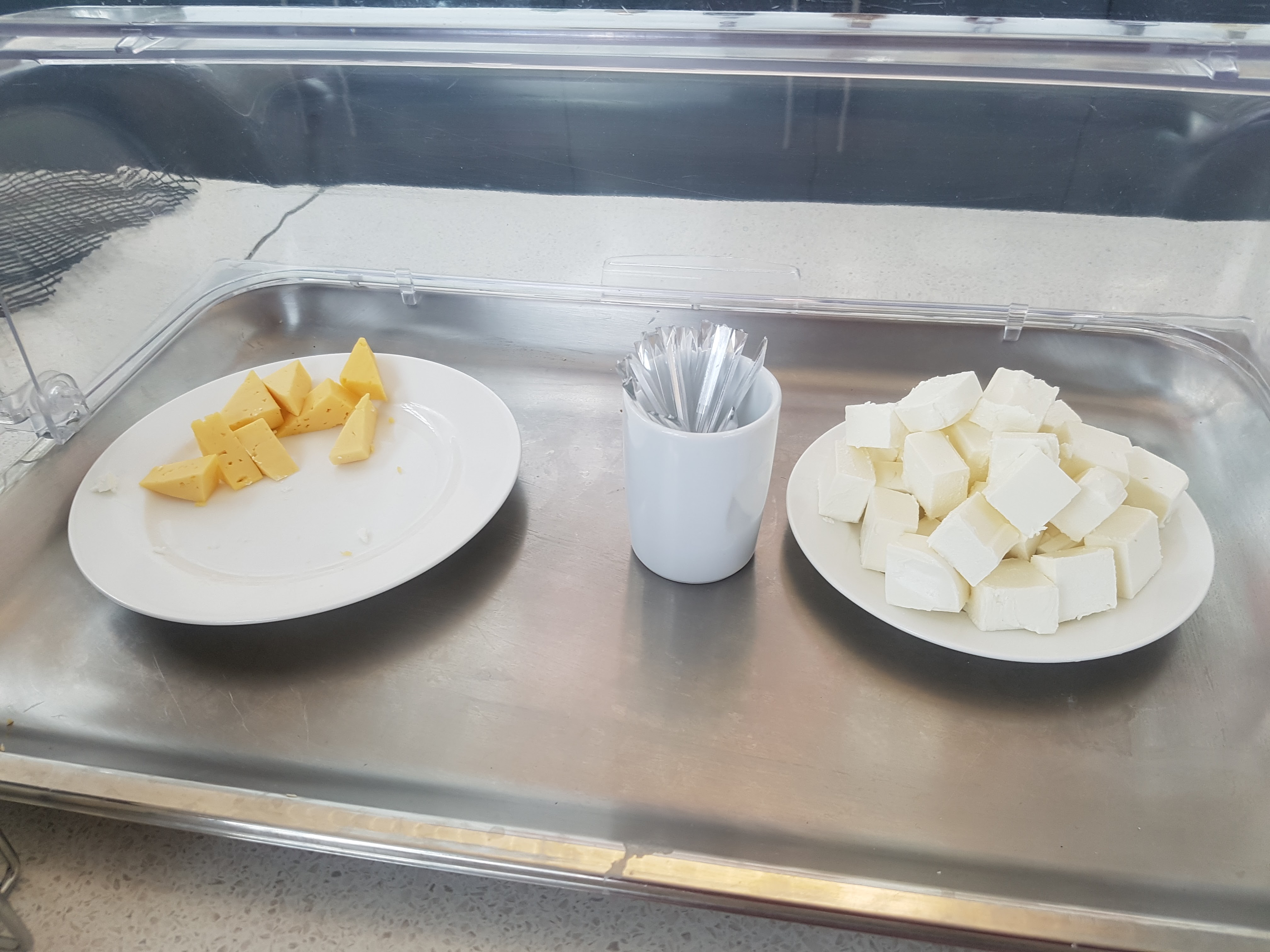 Oferta gastronomiczna saloniku jest skromna, dostosowywana do pory dnia. Rano serowana jest jajecznica, słodkie, zapiekane ciasto sernikowe, płatki na mleku, sałatka owocowa, oraz wybór wędlin i serów. Po południu z kolei wybierać możemy spośród dwóch zup, oraz zestawu elementów stanowiących zestaw obiadowy na ciepło – jeden rodzaj mięsa, warzywa, oraz ryż bądź inne, podobne danie. Samo jedzenie jest smaczne, świeże i odpowiednio podgrzane. Pewne zastrzeżenia można by zgłosić do prezentacji oferowanych potraw i przekąsek, niemniej ocenę tego stanu rzeczy pozostawiamy gościom.