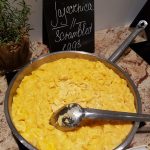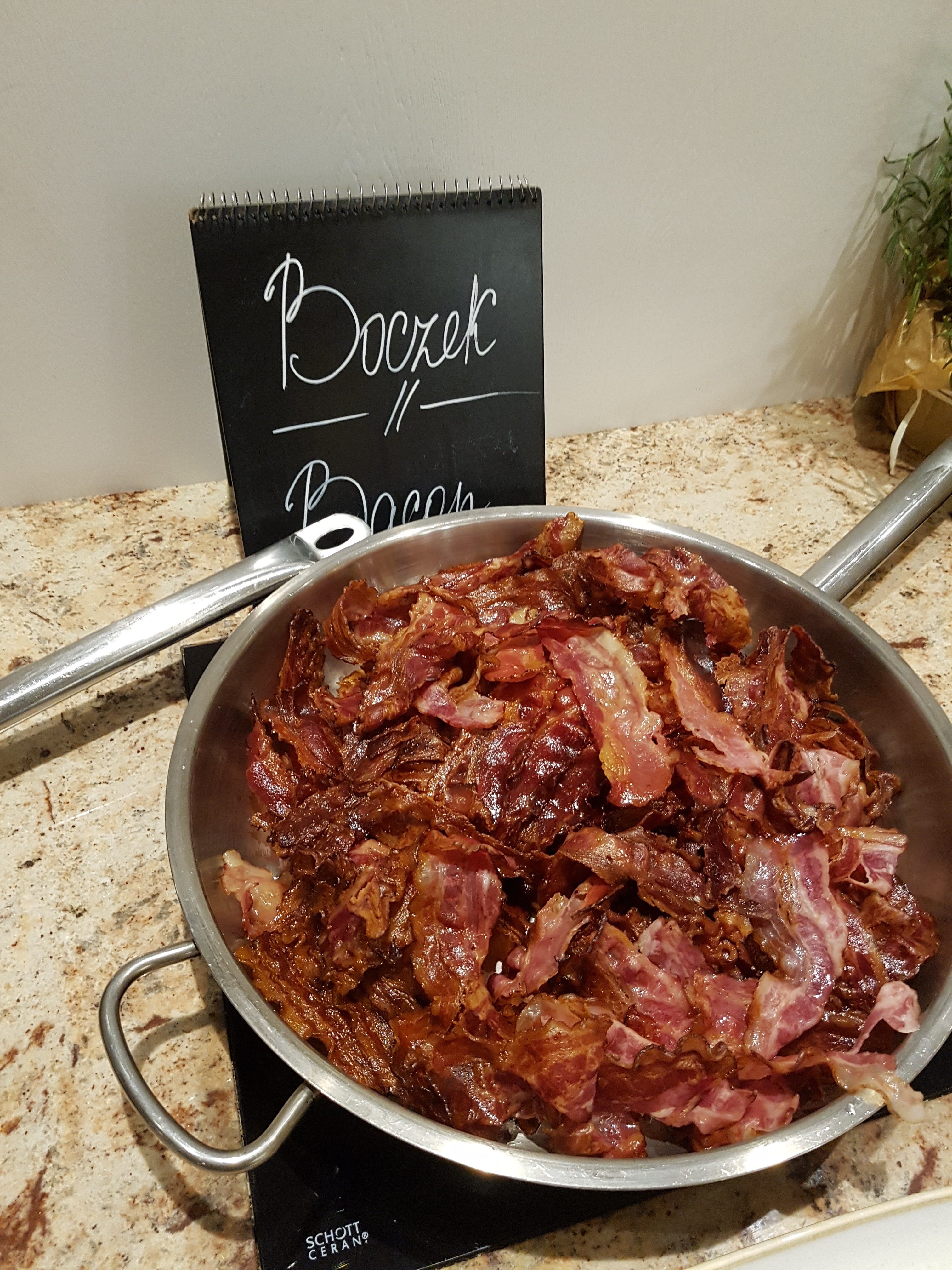 W ofercie dań ciepłych znajdziemy między innymi jajecznicę i parówki, frankfurterki z cebulką, białe kiełbaski, bekon, pieczone pomidory, fasolkę śniadaniową czy podsmażane pieczarki, ale też tarteletki czy grillowane warzywa.