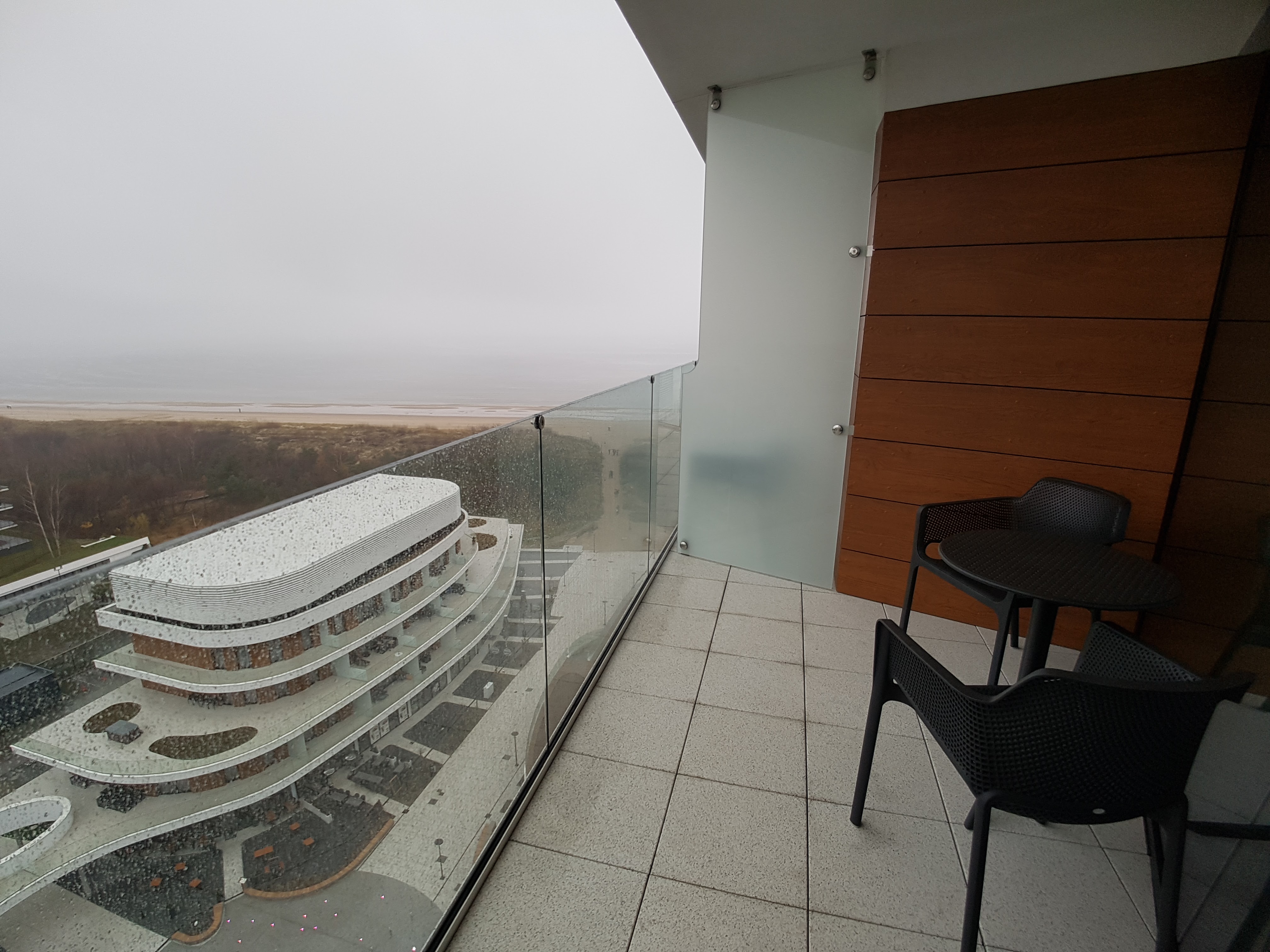 Z balkonu naszego pokoju rozpościera się piękny widok na gotową już część kompleksu Baltic Park oraz szeroką, publiczną plażę Świnoujścia.