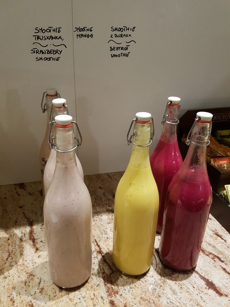 Warto też wspomnieć o pysznych koktajlach – truskawkowym i mango, oraz przepysznym smoothie z buraka. Goście mogą również skorzystać z 6 świetnych ekspresów marki Franke, serwujących wiele pysznych rodzajów kawy i czekoladę. Oczywiście trudno wymienić wszystkie dania serwowane w ramach oferty śniadaniowej, tym bardziej, że były one po części różne podczas naszego dwudniowego pobytu. Jeśli ktoś potrafi zerwać się na śniadanie wcześnie, powinien być zadowolony zarówno z wyboru, jak i względnego spokoju panującego w restauracji o tej porze. Warto przy tym wybrać z miejsce z dala od kuchni, z której otwartych drzwi dość wyraźnie słychać sekrety kuchennego życia. Miejsca, które nie sprzyjają spokojnemu początkowi dnia to też te, w których gromadzi się grupkami obsługa.