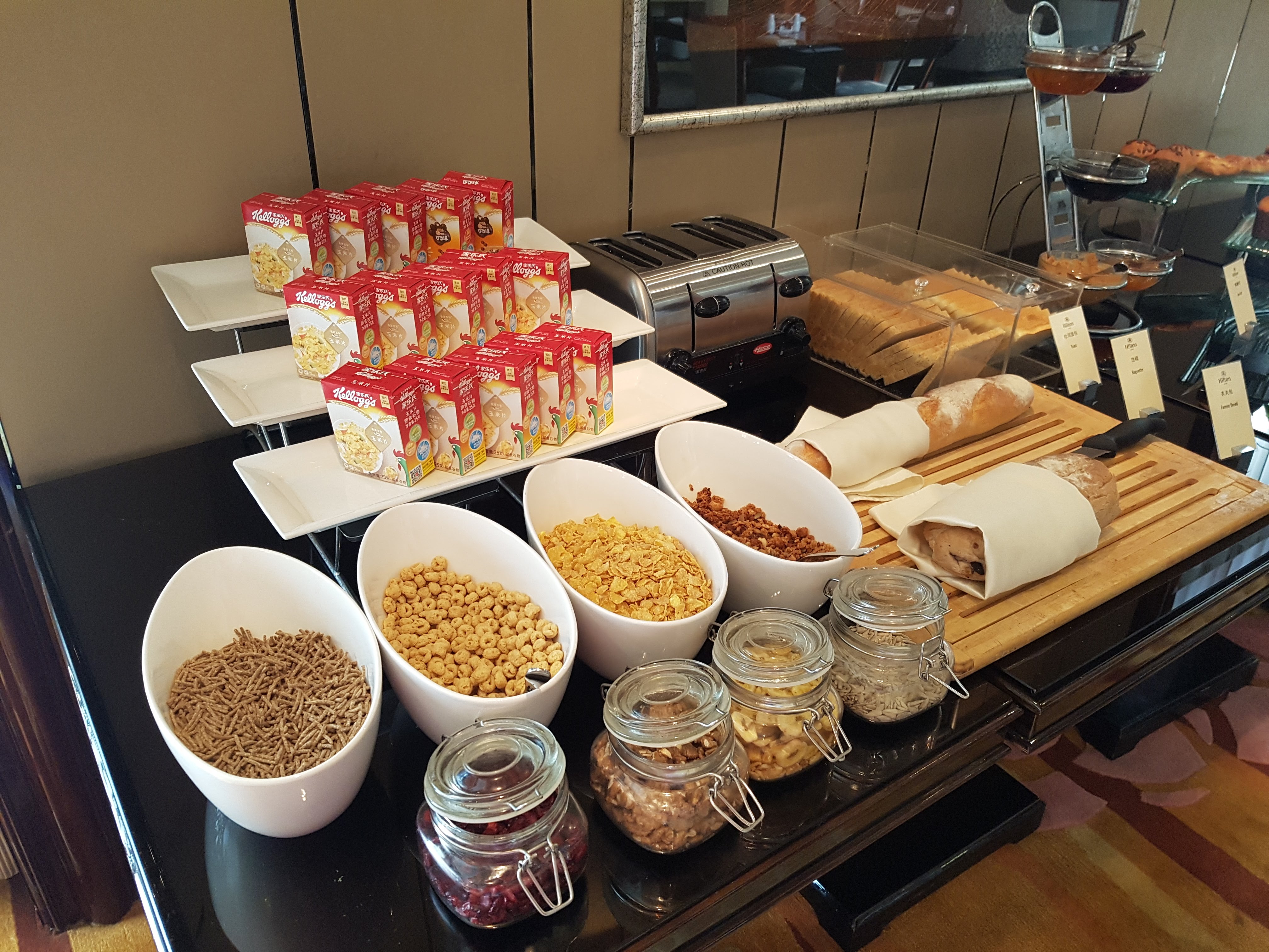 My jednak mieliśmy do załatwienia parę spraw – oprócz prysznica i szybkiego śniadania, które postanowiliśmy zjeść w saloniku, musieliśmy ustalić co dzieje się z naszymi kartami kredytowymi. Mimo wszechobecnej w Chinach cenzury okazało się, że po raz kolejny wybawieniem w podróży jest dla nas funkcja WiFi Calling u naszego operatora komórkowego. Działała ona świetnie w hotelowej sieci WiFi, więc kontakt z bankiem nie był problemem. Na naszą korzyść działała również różnica czasu – środek nocy w kraju oznaczał natychmiastowe niemal połączenie z pracownikiem banku. Uzbrojeni w wiedzę przekazaną przez bank, wykąpani, udaliśmy się rozwiązać sprawę na recepcję. Tu kolejna próba autoryzacji odbyła się bez żadnego problemu. Z nieco już lżejszymi głowami zajrzeliśmy na moment do Executive Lounge, gdzie serwowane było śniadanie.