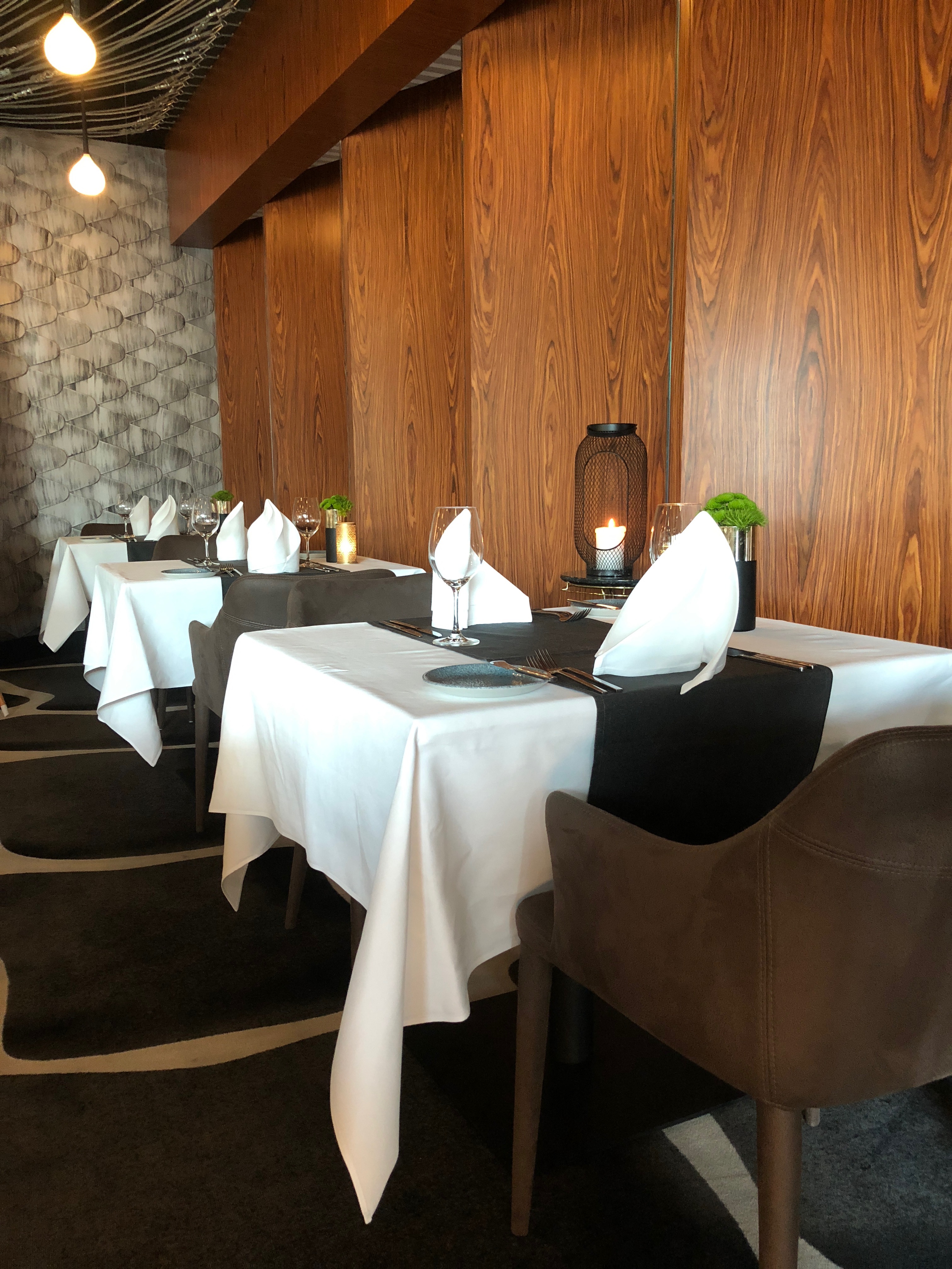 Restauracja Oyster to zupełnie inny klimat. Usytuowana jest na parterze hotelu, z oknami wychodzącymi na promenadę prowadzącą nad morze. Po przeciwnej stronie okien znajduje się interesująco zaaranżowana ściana imitująca metaliczną, rybią łuskę.