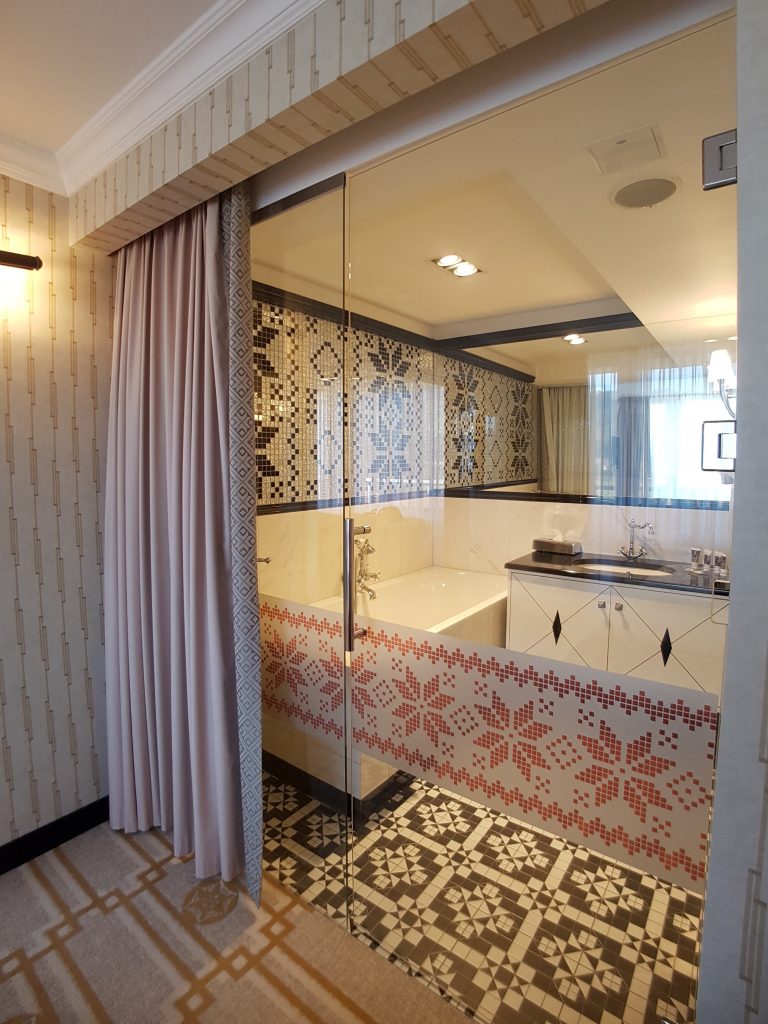 Dzwonimy na recepcję i zgłaszamy prośbę o wymianę ręczników i szklanek oraz dostarczenie dwóch dodatkowych poduszek. Po chwili pojawia się bardzo miła Pani z housekeepingu z kompletnym zamówieniem. Przy okazji pytamy, czy w standardzie w pokojach dwuosobowych i apartamentach są 2 oddzielne kołdry i uzyskujemy odpowiedź twierdzącą. Osoby, które lubią się otulić dużą kołdrą będą musiały w tym hotelu poradzić sobie inaczej. Niemniej jednak, zauważyliśmy, z nieukrywaną radością, że wysokie łóżko ma bardzo wygodny, lekko twardy materac, dokładnie tak, jak lubimy. Dzięki temu spało nam się wyśmienicie.