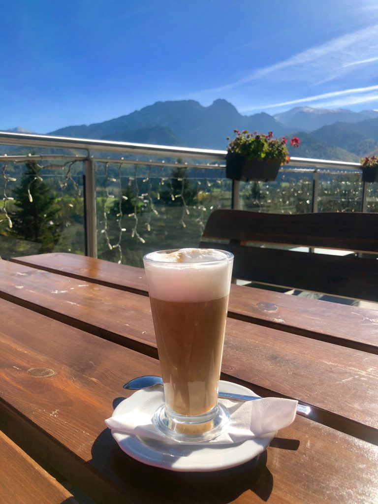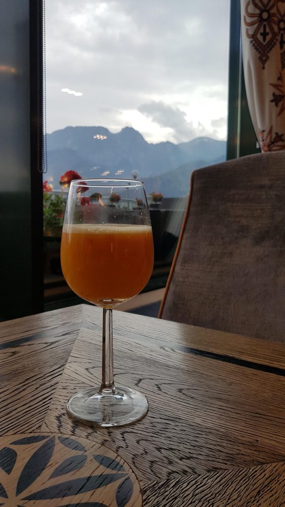 Przed samym wyjazdem udajemy się na drinka do baru. Zamawiamy świeżo wyciskany sok z pomarańczy oraz czekoladę na gorąco z bitą śmietaną. Ostatni raz podczas tego wyjazdu spoglądamy na Tatry.