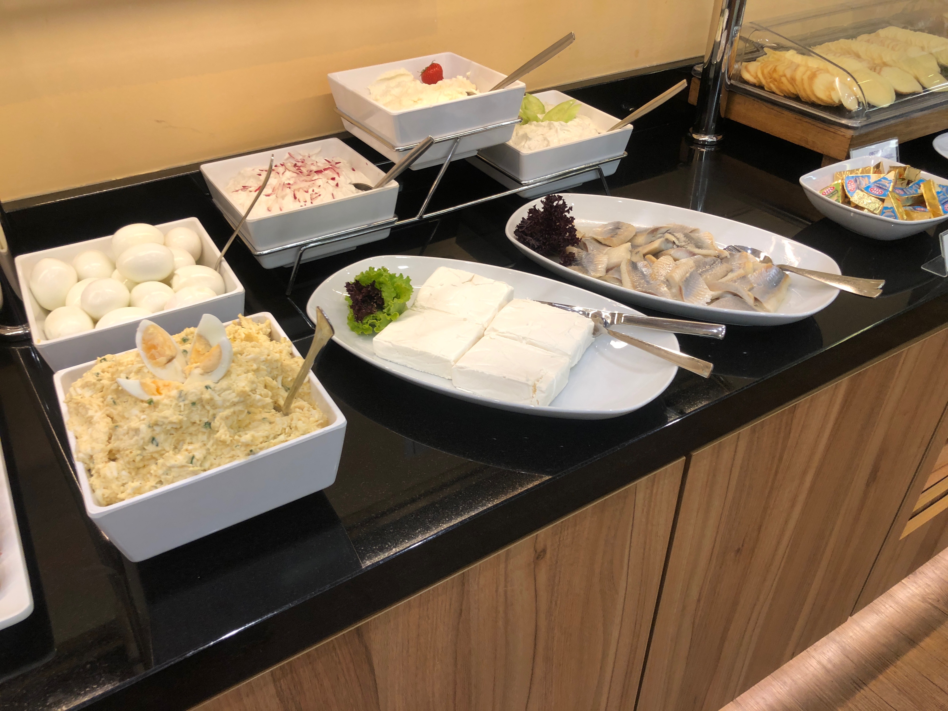 Musimy pochylić czoła przed zespołem hotelowej gastronomii, gdyż kompozycja i wybór dań w bufecie śniadaniowym były, jak na hotel trzygwiazdkowy, bardzo szerokie i urozmaicone.