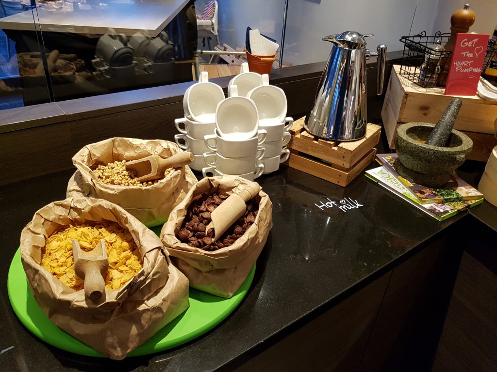 W menu śniadaniowym, oprócz wspomnianych już dań ciepłych, królują wieczne evergreeny hotelowych bufetów – poczynając od muesli i sałatki owocowej, przez wędliny i sery, warzywa, aż po wybór pieczywa czy słodkie muffiny. Na uwagę zasługują produkty niestandardowe, takie jak ogórki kiszone, czy regionalne sery – oscypki, których jednak nie dane było nam spróbować, ze względu na brak uzupełniania bufetu. Inną ciekawostką były smoothie na bazie arbuza i mięty oraz mleka kokosowego i ananasa.