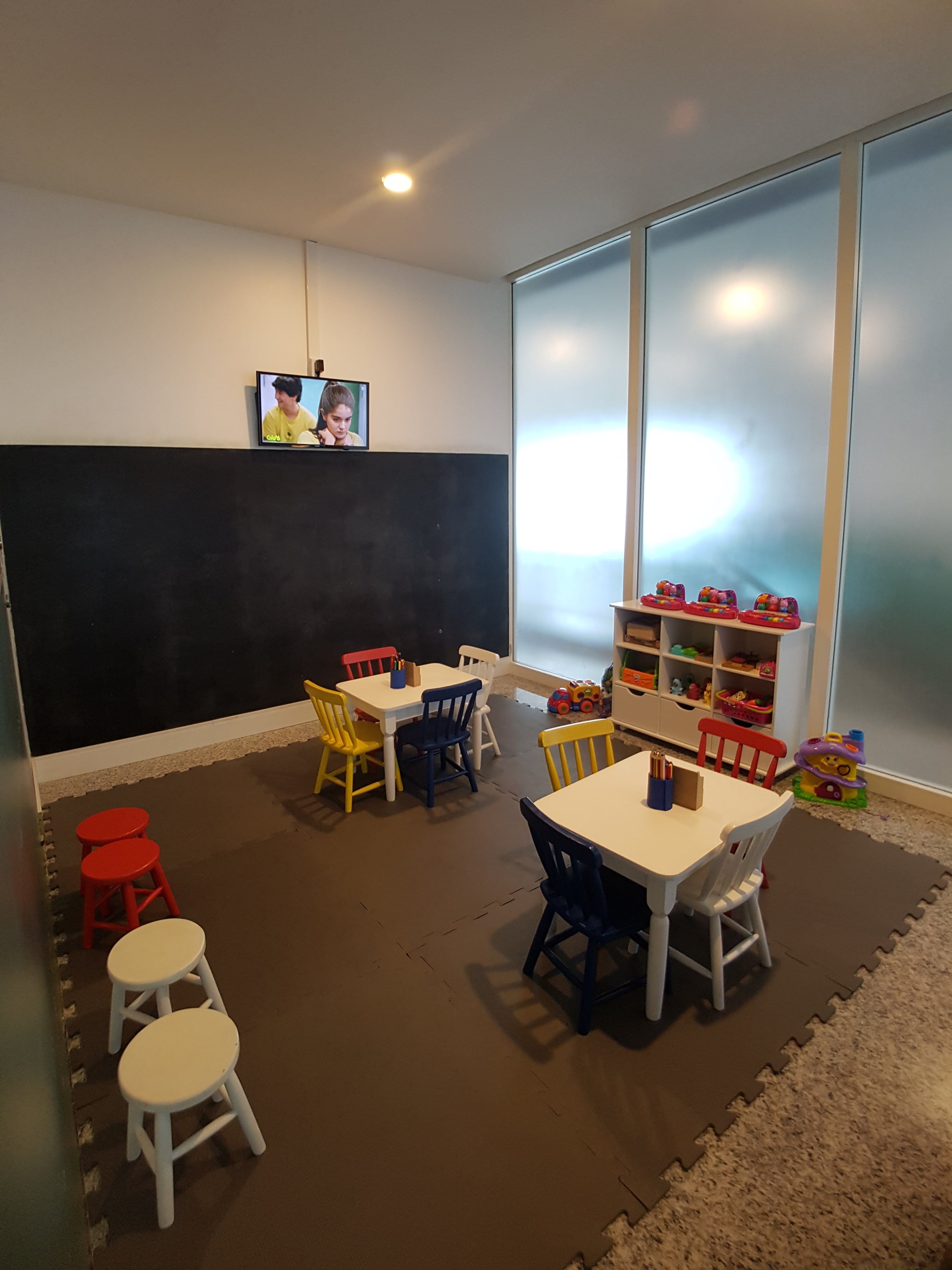 Strefa wypoczynkowa składa się z kilkudziesięciu foteli ze stolikami, w różnych konfiguracjach. Obok strefy wypoczynkowej znajduje się również mały pokój z zabawkami dla najmłodszych pasażerów.