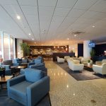Przy wejściu nasze karty pokładowe zostają sprawdzone i po chwili udajemy się do środka pustego saloniku. AZUL Lounge nie jest duży i na pierwszy rzut oka widzimy jasny podział na dwie strefy: bufetową oraz wypoczynkową.