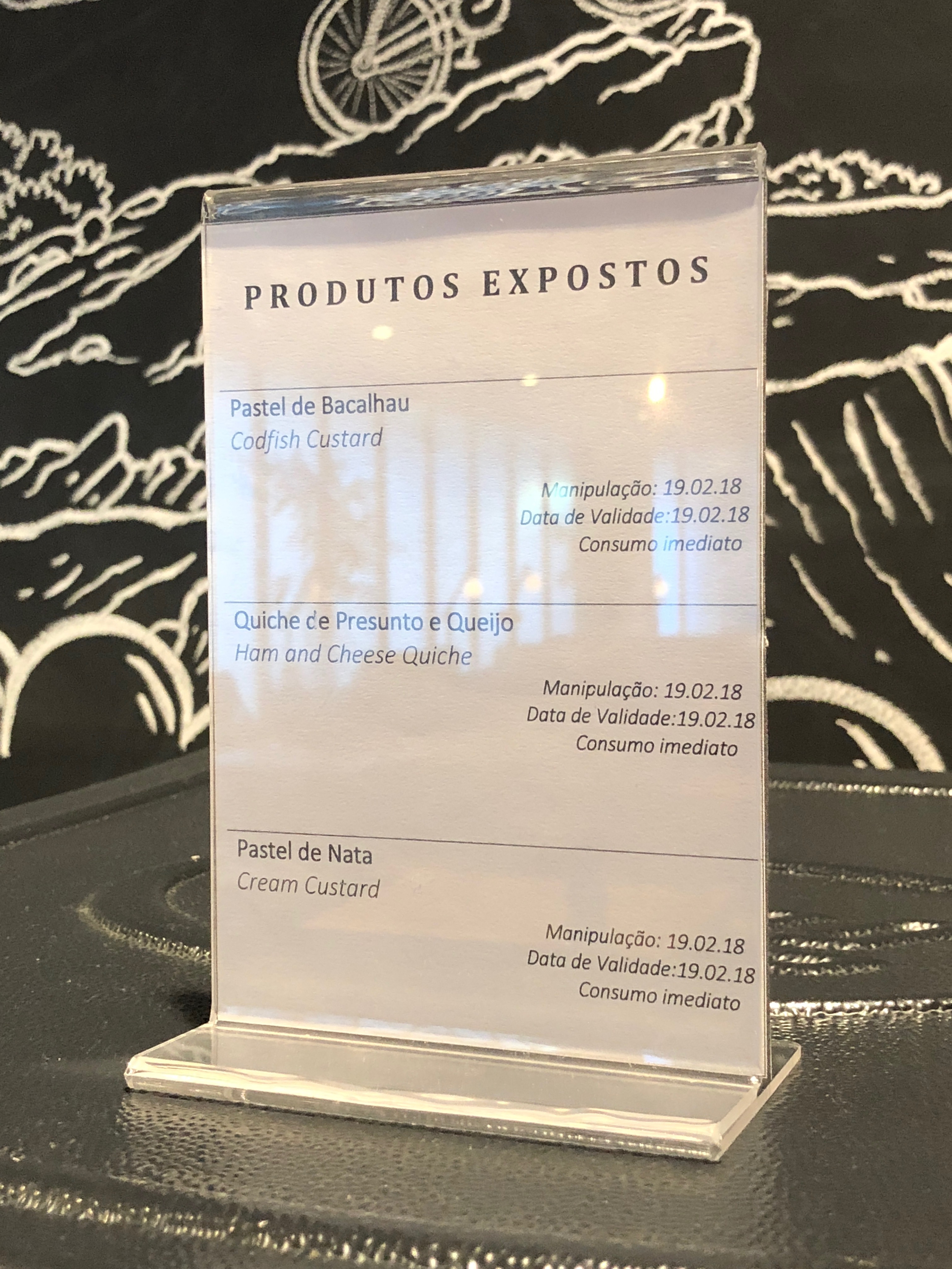 Pasażerowie mogą wybierać spośród kilku rodzajów dań zimnych i ciepłych. W menu znajdziemy: croissanty z salami i serem, małe kanapeczki z pastą z kurczaka, pieczywo, słynne portugalskie Pastel de Nata, quiche, tarty z rybą, przekąski słone i słodkie, owoce, muesli oraz ciasto.