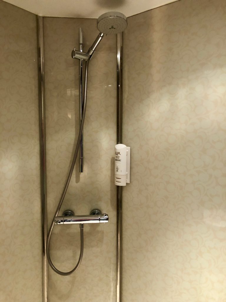 Stena Line – wycieczka Gdynia – Karlskrona w kabinach Panorama – kabina Panorama 8167 – łazienka – prysznic