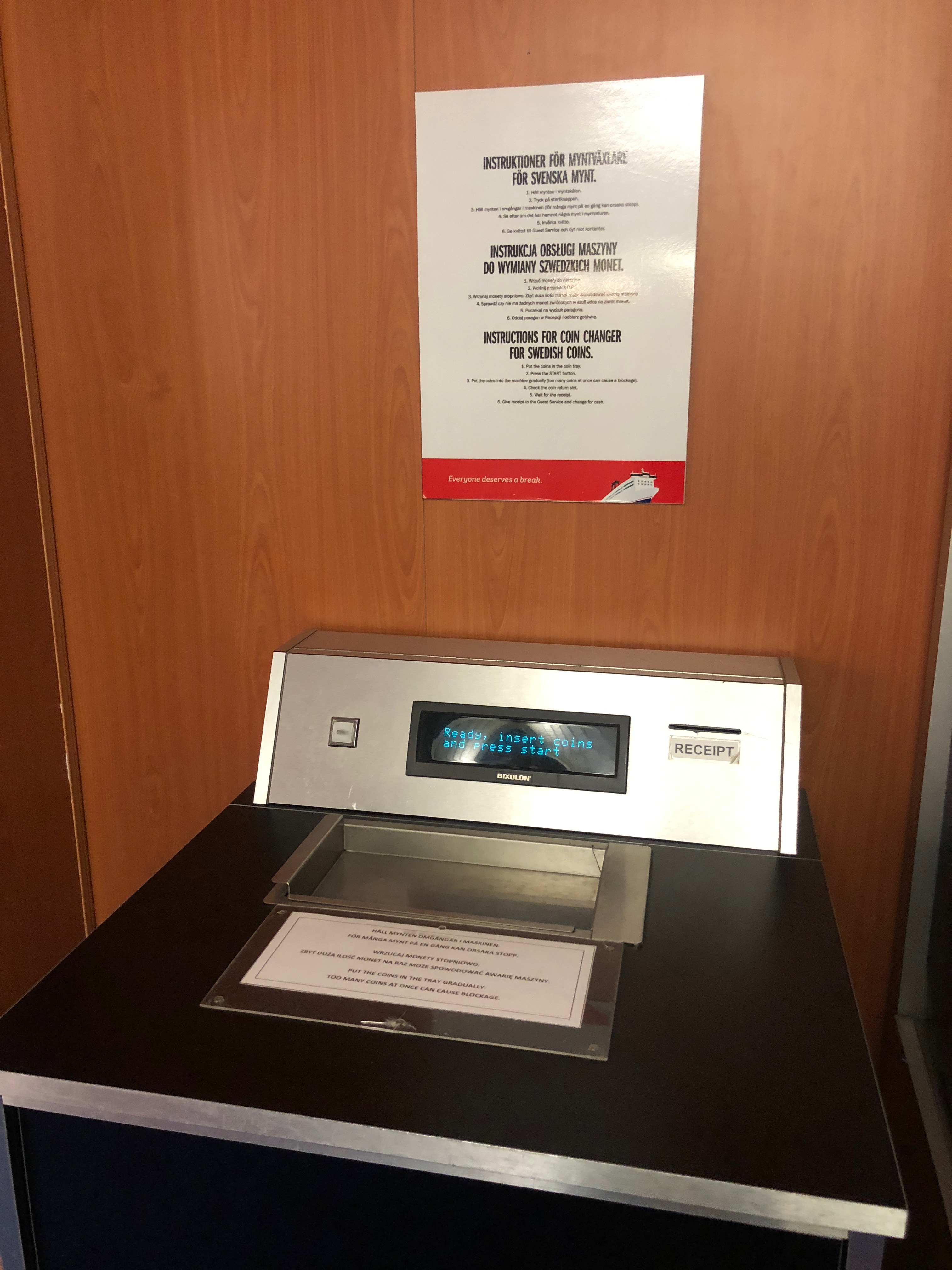Stena Line – wycieczka Gdynia – Karlskrona w kabinach Panorama – maszyna do zmieniania bilonu na banknoty