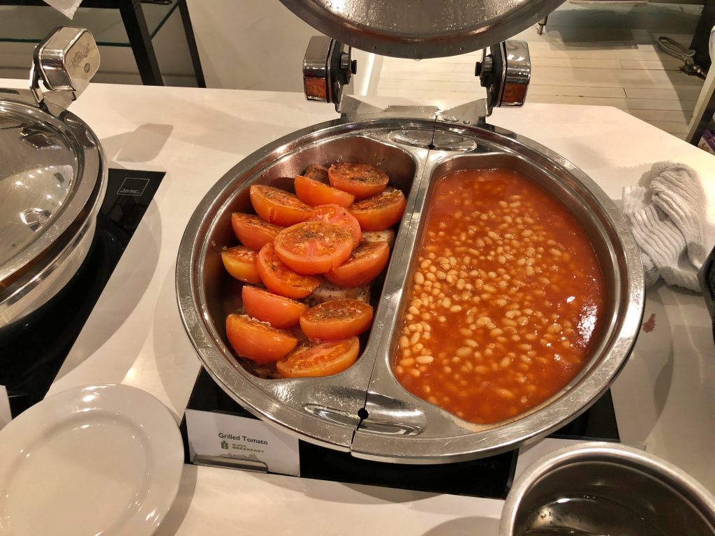 Oferta bufetu śniadaniowego jest bardzo bogata i różnorodna – od świeżych owoców, po pieczoną w całości wielką szynkę, porcjowaną na zamówienie przez Kucharza. Mimo szerokiego wyboru dań, bez problemu da się tu odnaleźć jasne odwołania do angielskiej tradycji tego posiłku – gdyby nie brak w widocznym miejscu kaszanki (black pudding), z elementów dostępnych w bufecie bez problemu można by skonstruować pełne, angielskie śniadanie.