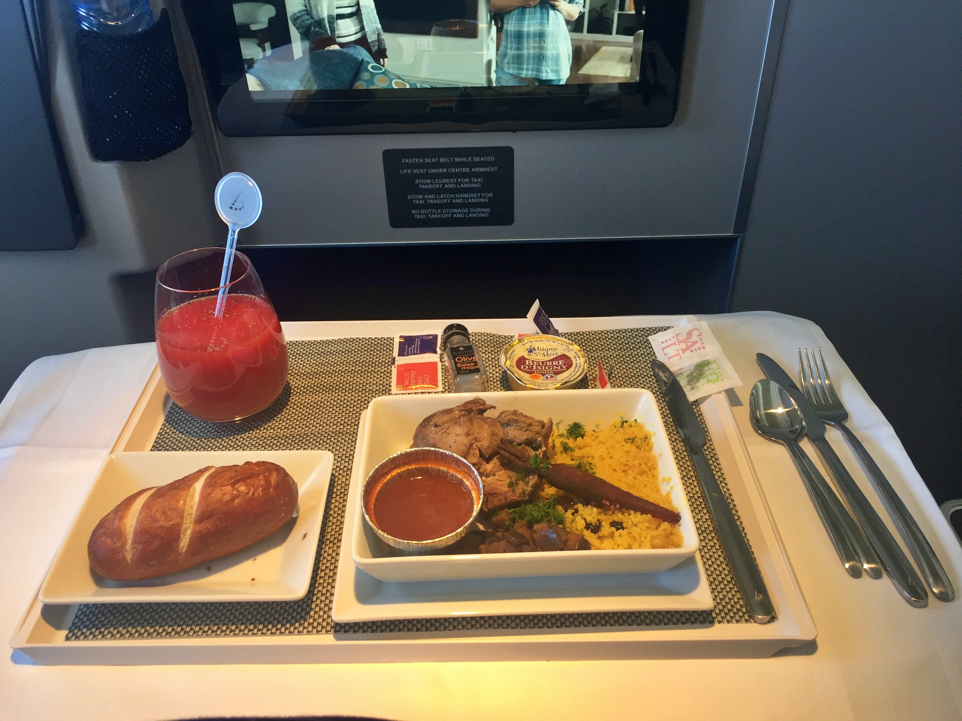 Brussels Airlines – Klasa Biznes w Airbus A330 Bruksela – Mumbaj – jagnięcina z bakłażanem i kuskusem