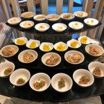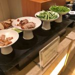 W godzinach wieczornych, w Executive Lounge serwowane są przekąski i dania ciepłe. Oprócz dostępnych przez cały dzień ciast, słodyczy, owoców oraz słonych i słodkich przekąsek, pojawia się również kilka dań ciepłych, oraz serwowany jest alkohol. W czasie naszych wizyt, były to głównie dania z elementami owoców morza – nie ma się tu zresztą czemu dziwić, w końcu jesteśmy tu o krok od Morza Południowochińskiego. Niemniej, zarówno mięsożercy jak i wegetarianie znajdą tu wiele opcji dla siebie. Jak zwykle, oprócz świetnej jakości i różnorodności jedzenia, na najwyższą pochwałę zasługuje bezbłędna obsługa – zamówienia realizowane są niemal natychmiast, zużyte talerze znikają ze stolików w oka mgnieniu, a bufet uzupełniany jest na bieżąco.