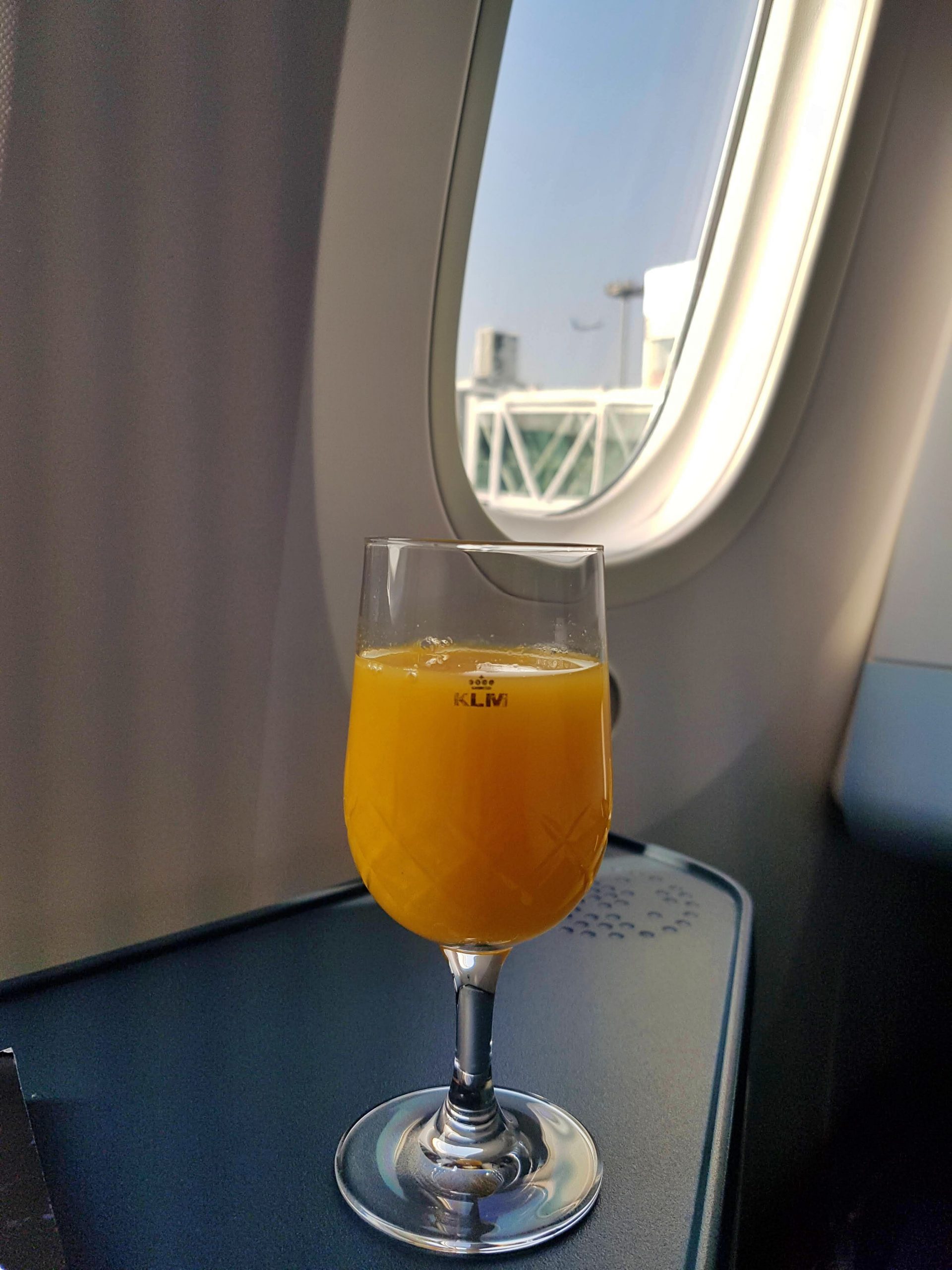 W czasie, gdy rozglądamy się po kabinie, dwie Stewardessy roznoszą ‘welcome drinki’. Do wyboru są: woda, szampan, świeżo wyciskany sok pomarańczowy, i piwo – oczywiście Heineken. Jeśli któryś z pasażerów ma ochotę na drugą rundkę napojów, załoga bez najmniejszego problemu spełnia jego życzenie.